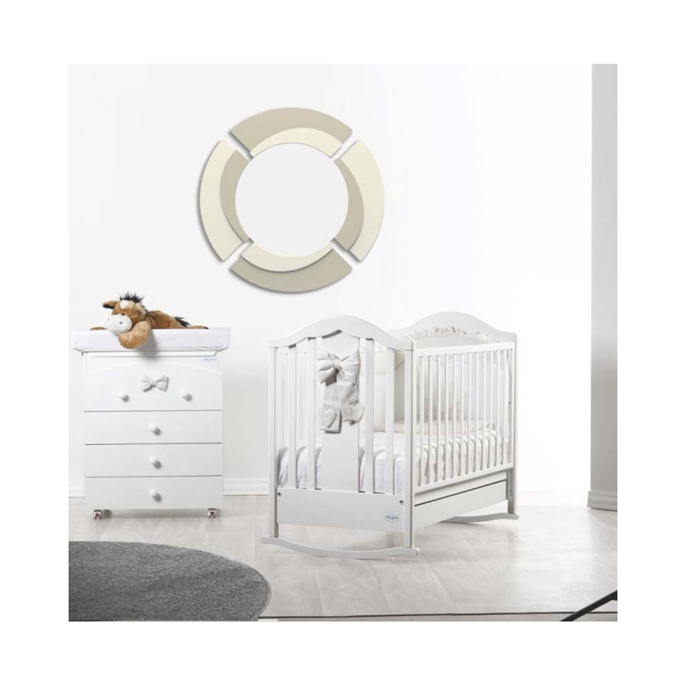 Baby Italia FIOCCO-детская кроватка с украшением в виде банта с сердечками, предназначена для детей от рождения до около 4 лет. Изготовлена из массива бука, покрыта природными и нетоксичными материалами, в соответствии со всеми европейскими стандартами. В наборе 4 части колес, из которых 2 части могут быть заблокированы.