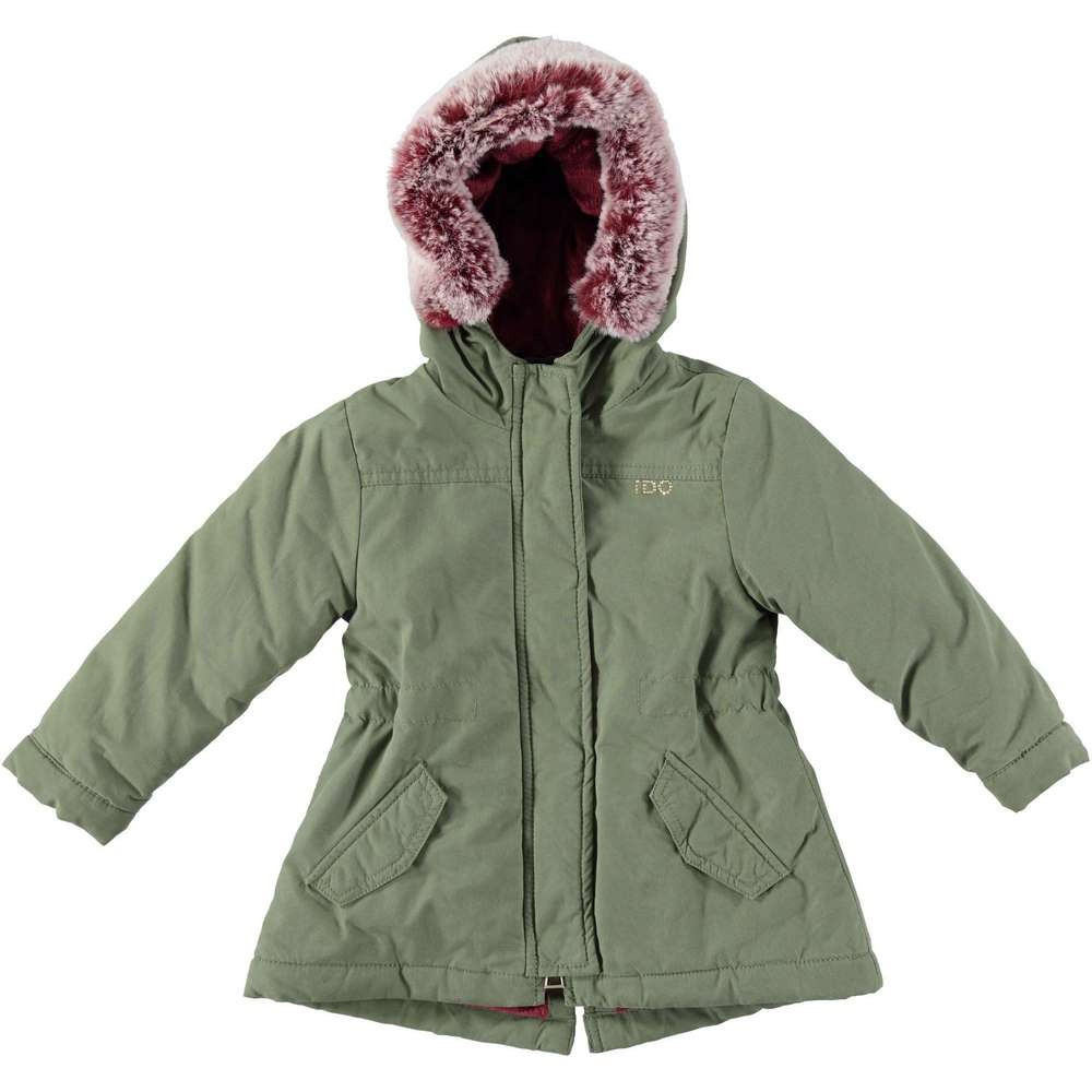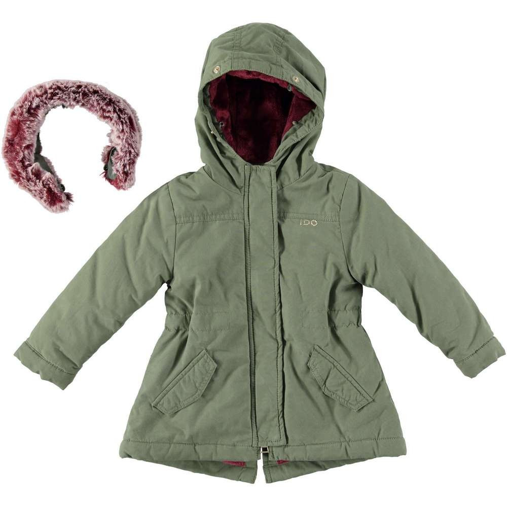 Коллекция осенне-зимнего сезона iDO - это парка в комплекте со съемной опушкой на воротнике. Нижняя часть рукава парки имеет внутреннюю манжету, накладные карманы с клапанами, а на спине имеется складка по центру, украшенная аппликационным бантом. Застегивается на молнию прикрытую планкой с кнопками.