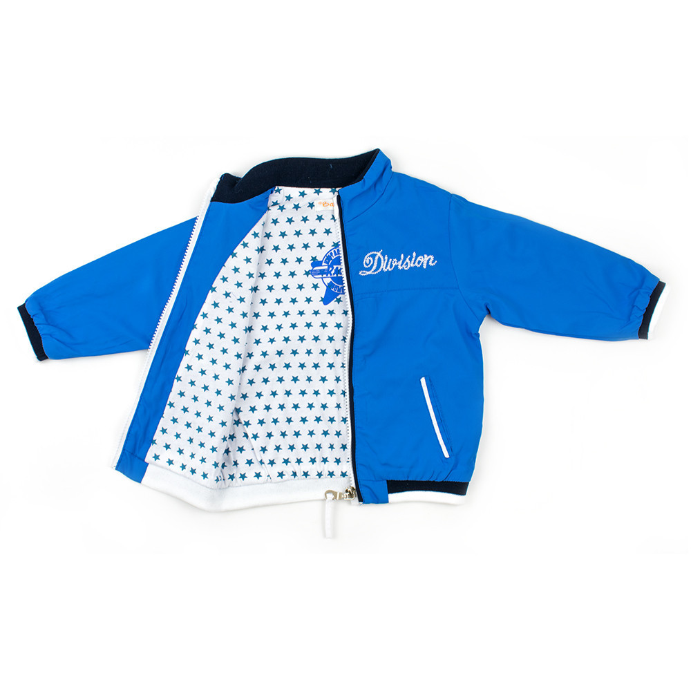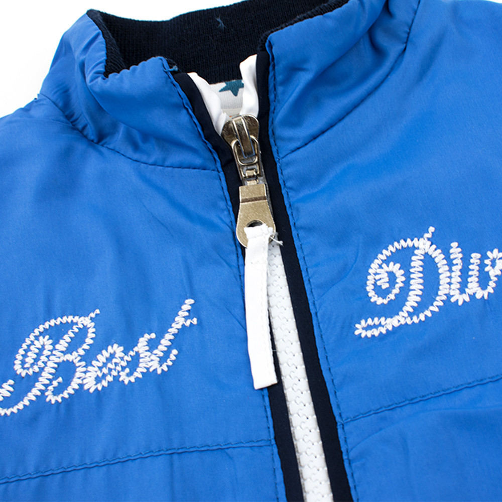 Ветровка Babybol необходимая вещь в гардеробе Вашего ребенка. Ветровка однотонная перед декорирован контрастной вышивкой. Трикотажная двойная эластичная резинка на поясе талии, манжеты рукавов окантованы контрастной каймой. Трикотажная хлопковая подкладка с принтом по всему полю, карманы в рамке. Куртка застегивается на молнию.