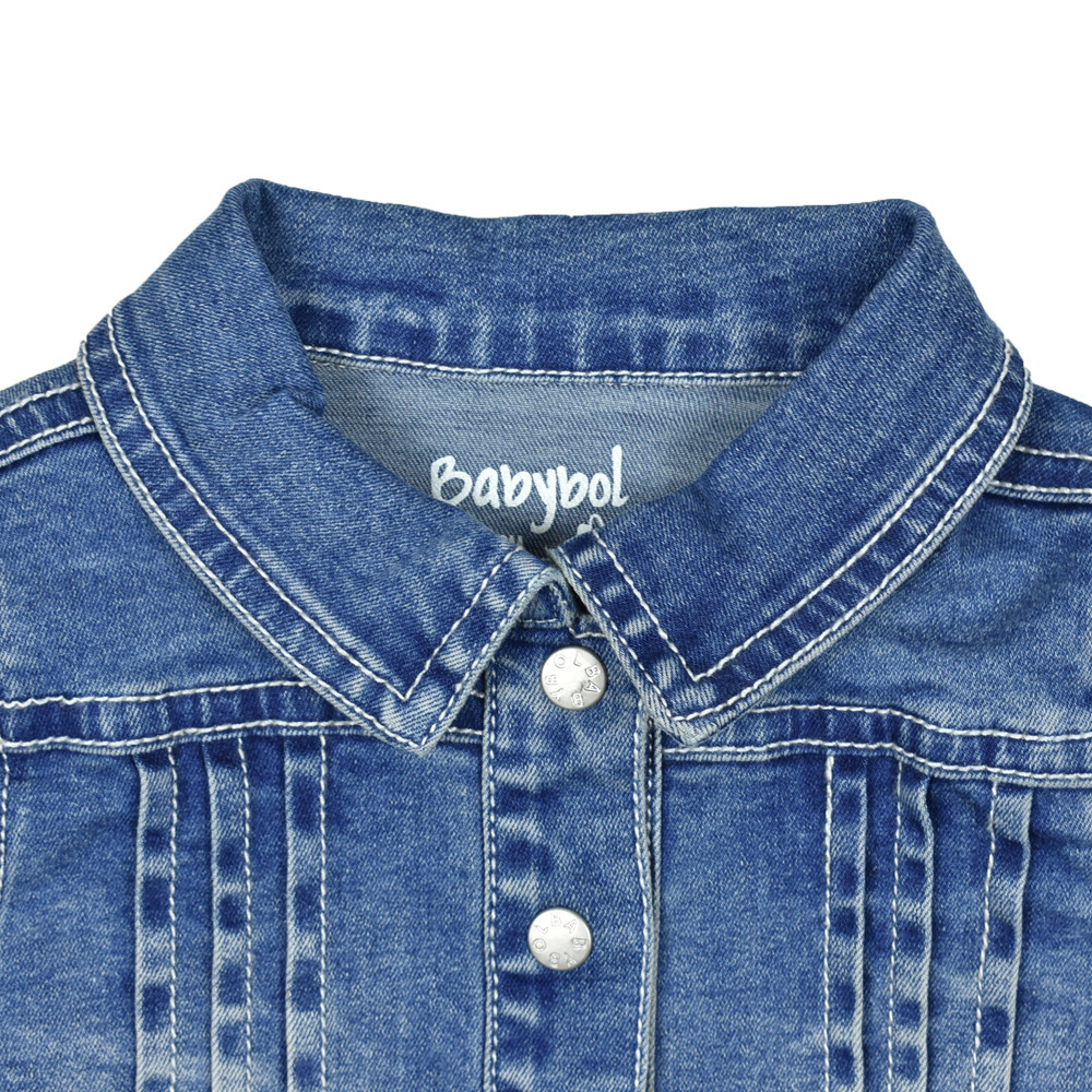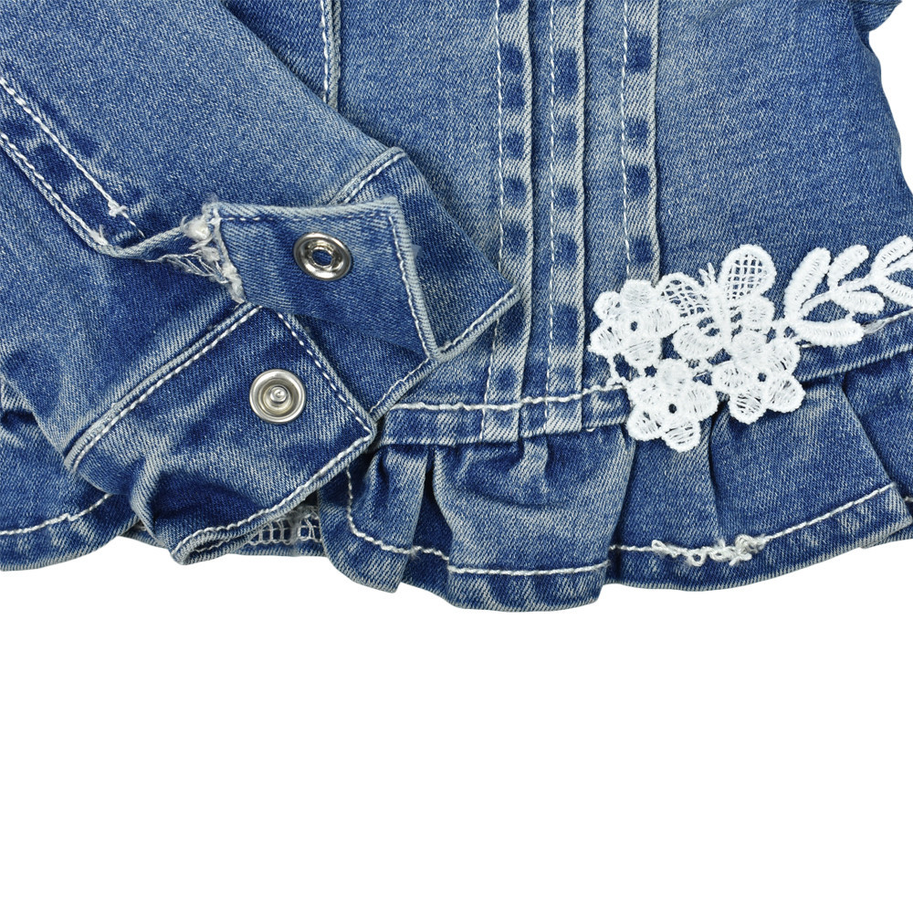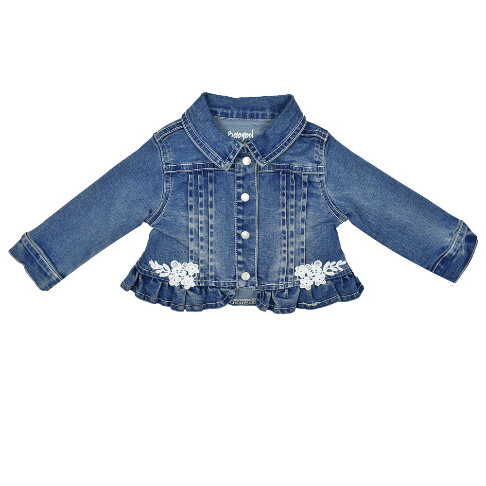 Стильная джинсовая куртка Babybol - необходимая вещь в гардеробе каждой девочки. Украшают куртку оборки и аппликации, отрезная отстроченная кокетка. Застежка расположена спереди по центру металлические кнопки. Замечательное предложение Вашей юной моднице.