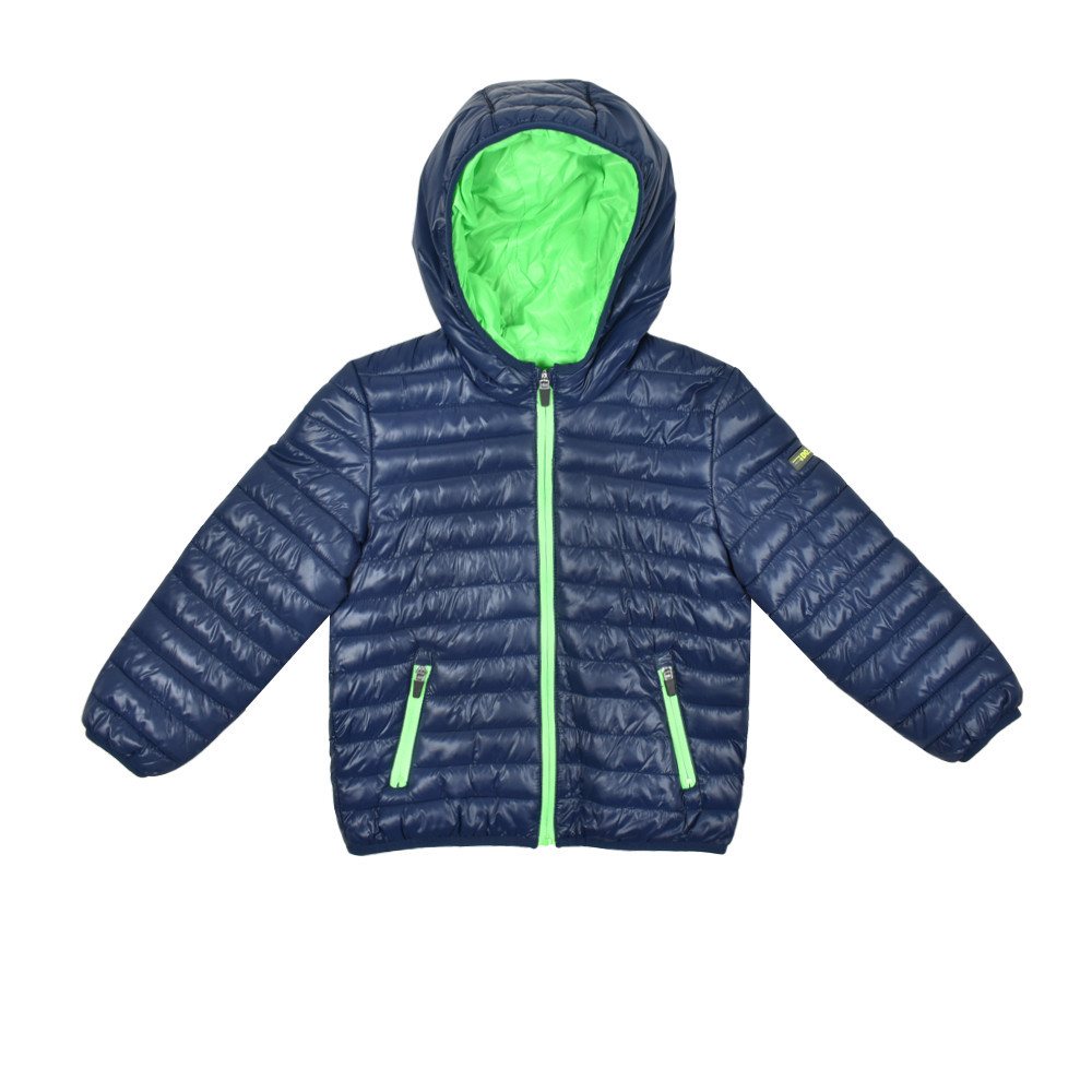 Стеганная демисезонная куртка с капюшоном согреет Вашего ребенка в холодное время года. Куртка на молнии, карманы тоже застегиваются на молнию. Подкладка у куртки яркая, одного цвета с молниями.