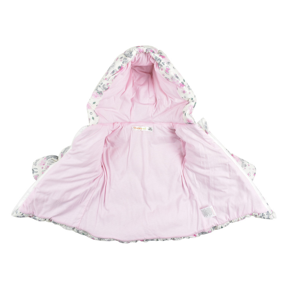 Замечательная демисезонная стеганная куртка Babybol для девочки на трикотажной хлопковой подкладке понравится Вам и Вашему ребенку. Куртка с капюшоном, застегивается на молнию, прикрытую планкой, карман оформлен, как бантик.