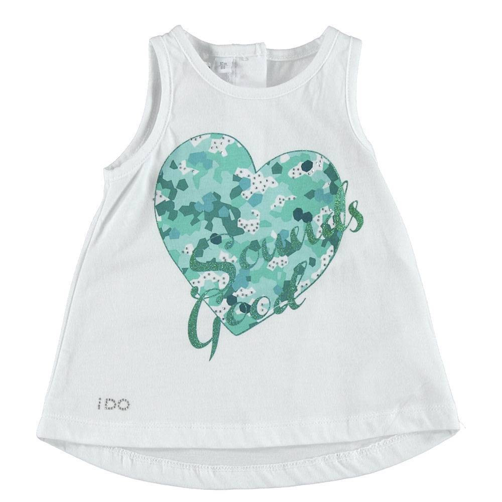 Будь стильной летом в этой трикотажной высококачественной из 100% хлопка майке iDO. Майка слегка расклешенная к низу и спинка длиннее переда и слегка округлена. Украшает майку принт в виде сердца с напылением внутри, снизу эмблема іDO из горных хрусталиков. Застегивается на пуговицы на спинке.