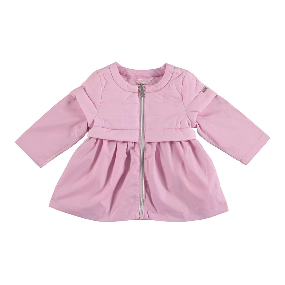 iDO предлагает Вашей маленькой принцессе модельное демисезонное пальто с круглой горловиной, отрезное по линии талии. Верхняя часть пальто стеганная. Застегивается спереди на молнию,
