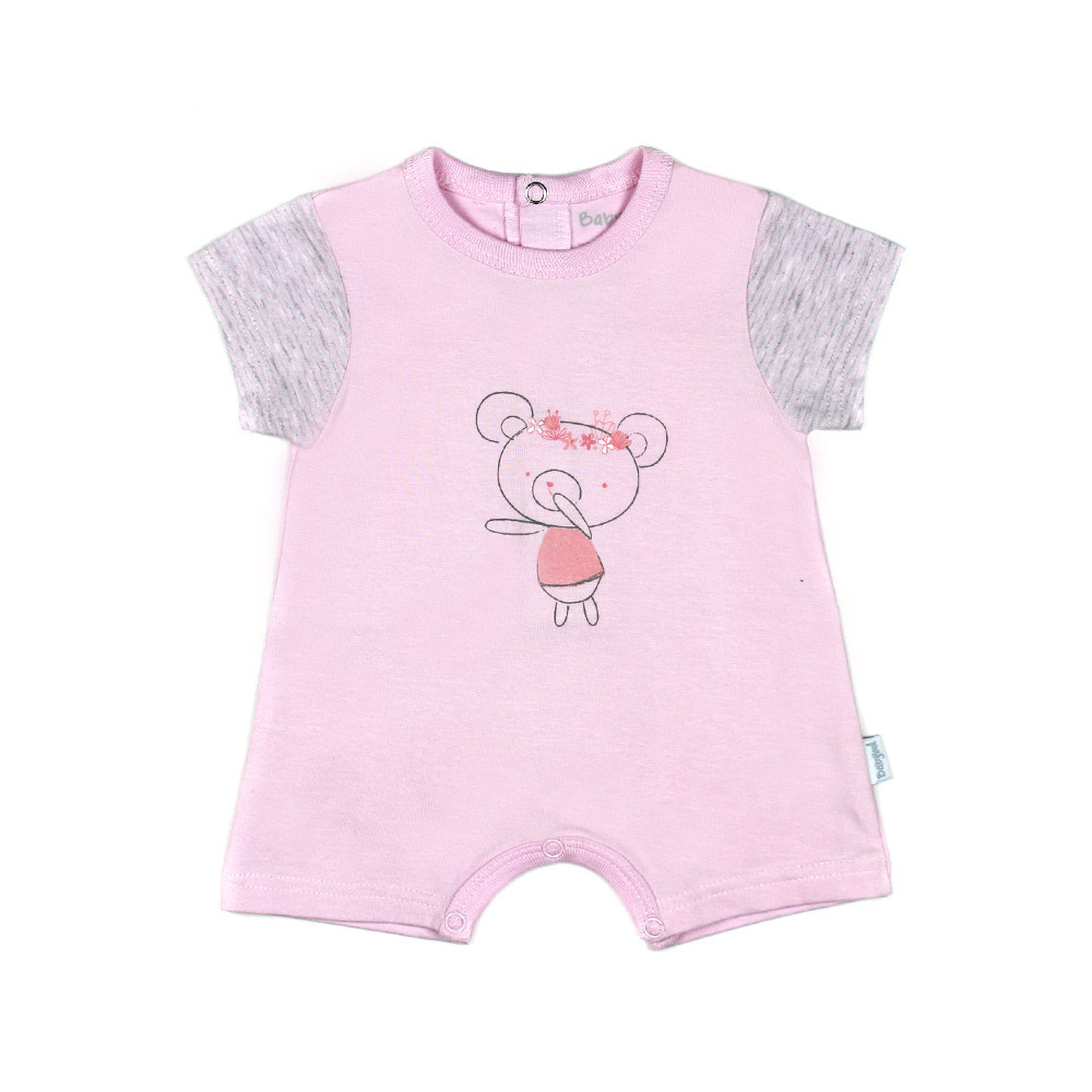 Очень удобная одёжка для жаркого летнего дня Babybol - мягкий песочник из натурального, дышащего хлопка, однотонный розовый, с серыми меланжевыми рукавами, по центру переда детский рисунок мышонка. Кнопки между ножками для удобства смены подгузника. Застегивается кнопками на спинке. Не стесняет движений ребёнка, в нём не жарко и удобно. Отличный выбор для прогулок, для песочницы, пляжа и даже праздничных мероприятий.
