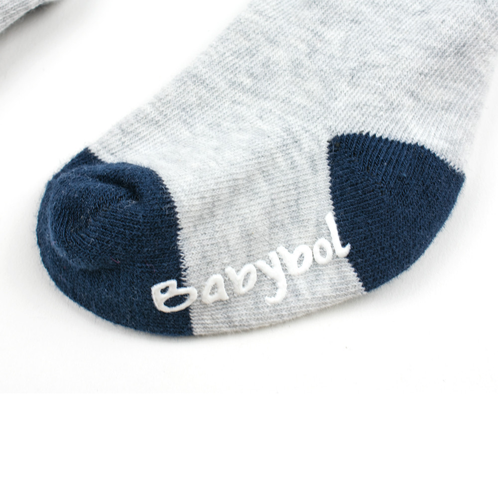 Замечательный комплект Babybol для девочки состоит из платья и колгот. Трикотажное полосатое платья украшено аппликацией и однотонными контрастными манжетами, горловиной. Застежка расположена на спинке - кнопки. У однотонных серых колгот колгот носочек и пяточка синие, как и у платья вставки.