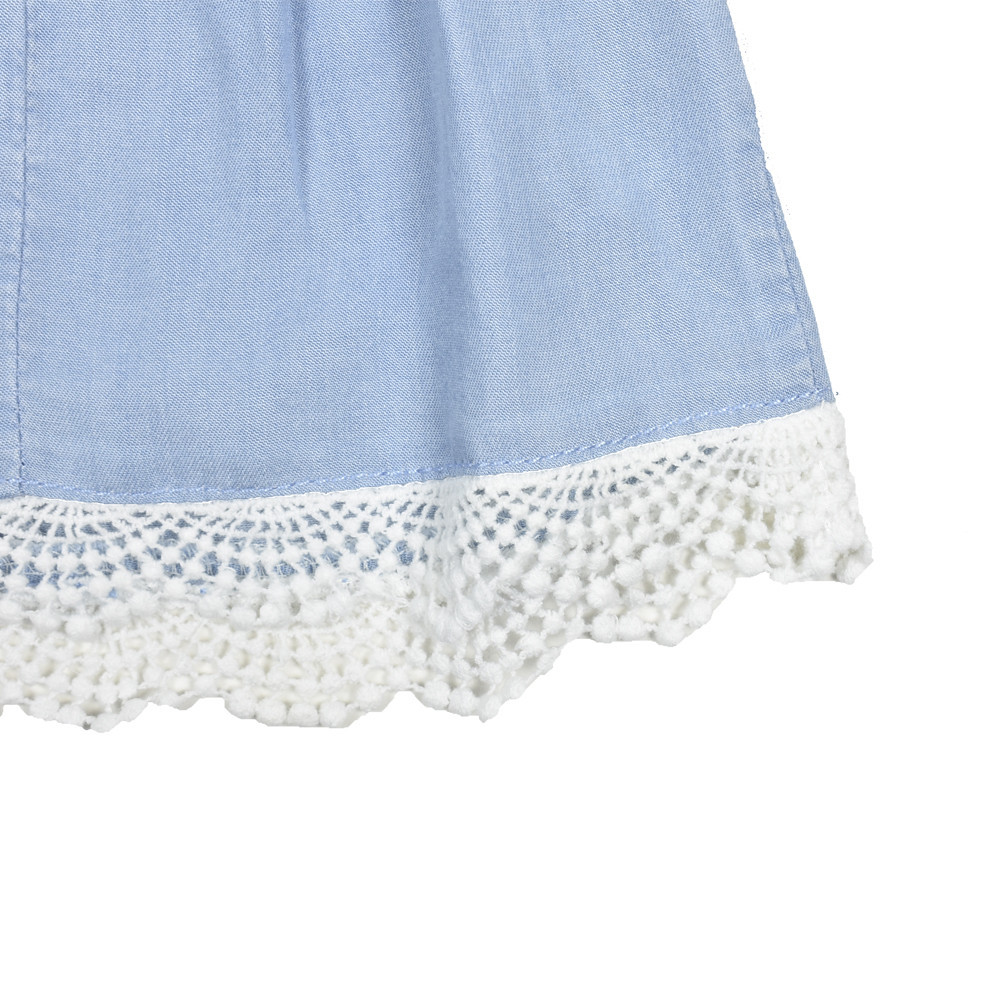 Все девочки любят красивые платья, даже самые маленькие. Такое красивое расклешенное к низу джинсовое платье Babybol с защипами спереди, аппликацией, складками, оборкой внизу станет отличным приобретением для весенне-летнего гардероба Вашей любимой малышки. Застегивается сзади на скрытую молнию. Такое симпатичное джинсовое платье можно одеть на семейный праздник, на красивую летнюю семейную фото-сессию, и просто на прогулку по парку в теплый летний день. Изготовленное только из натуральных и гиппоаллергенных тканей, оно прекрасно подходит для такой чувствительной и нежной детской кожи.