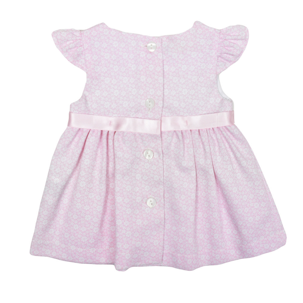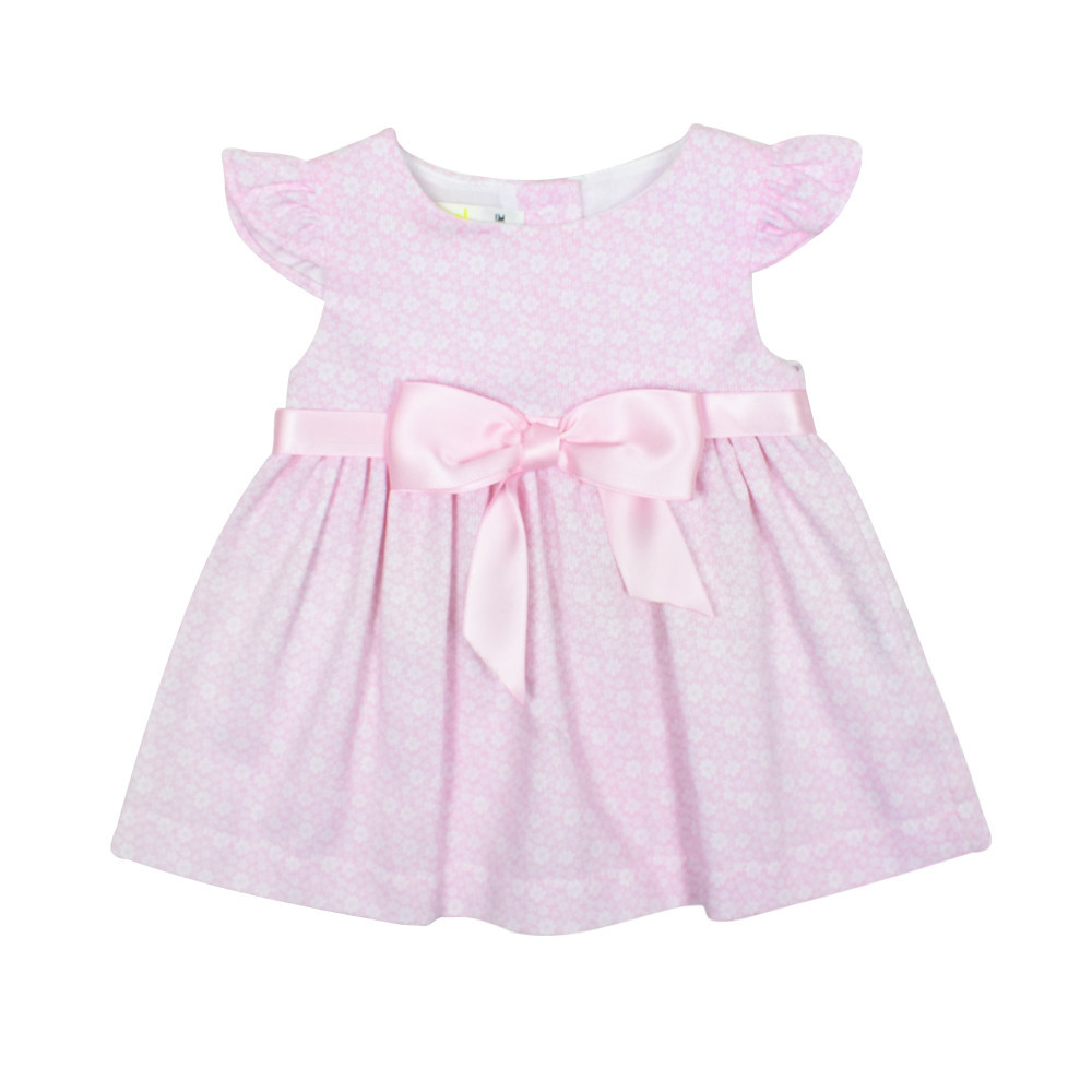 Шикарный комплект Babybol ля новорожденной девочки состоит из платья и трусиков. Платье на подкладке, отрезное по линии груди, со сборками, сто придают ему пышность и объем, застегивается на спинке пуговицами. Спереди платье по линии груди декорировано атласным бантом на поясе. Трусики изготовлены из одного материала с платьем. Простой, удобный, стильный комплект замечательное предложение для праздничного мероприятия.