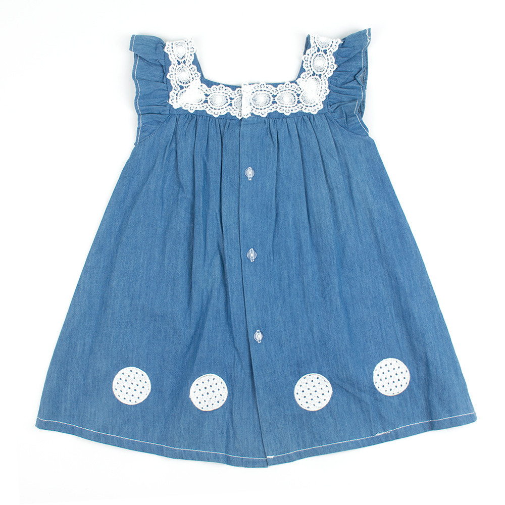Все девочки любят красивые платья, даже самые маленькие. Такое красивое расклешенное к низу джинсовое платье с защипами спереди, горловиной каре, оборкой внизу станет отличным приобретением для весенне-летнего гардероба Вашей любимой малышки. Застегивается сзади на пуговицы. Такое симпатичное джинсовое платье можно одеть на семейный праздник, на красивую летнюю семейную фото-сессию, и просто на прогулку по парку в теплый летний день.