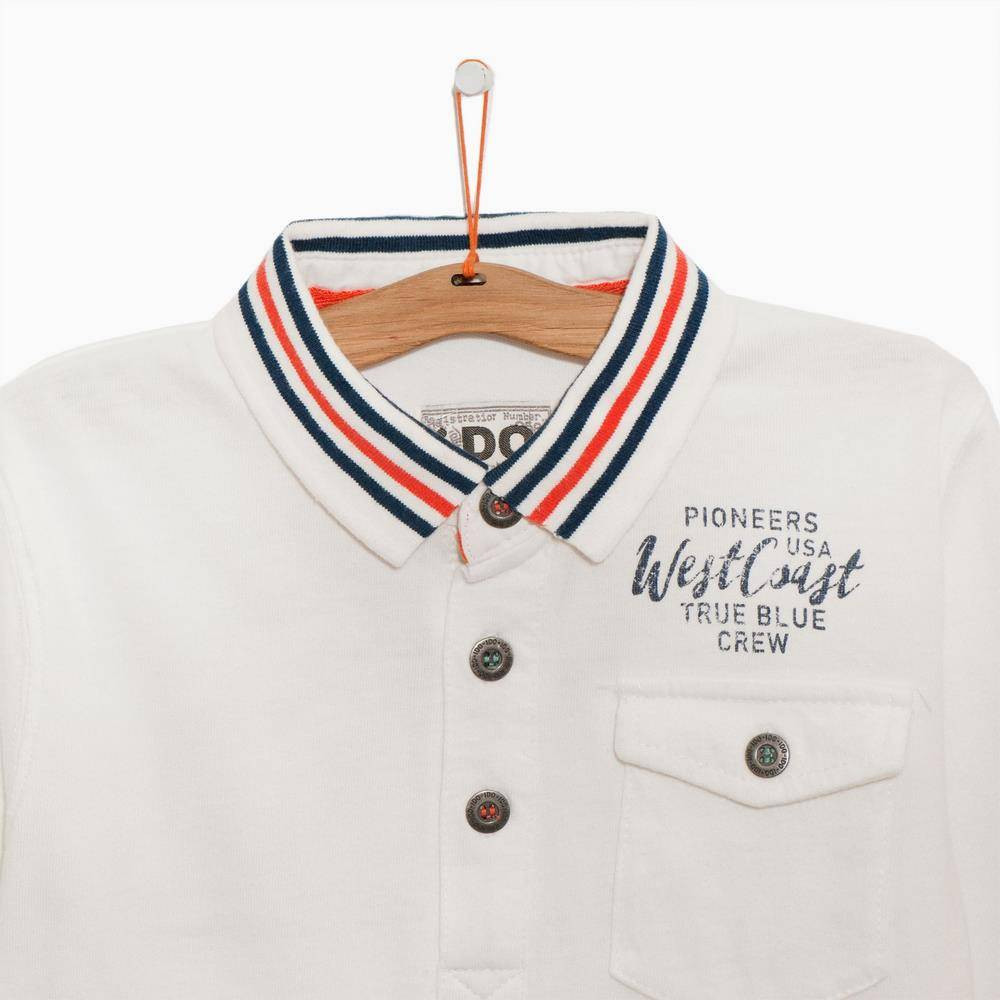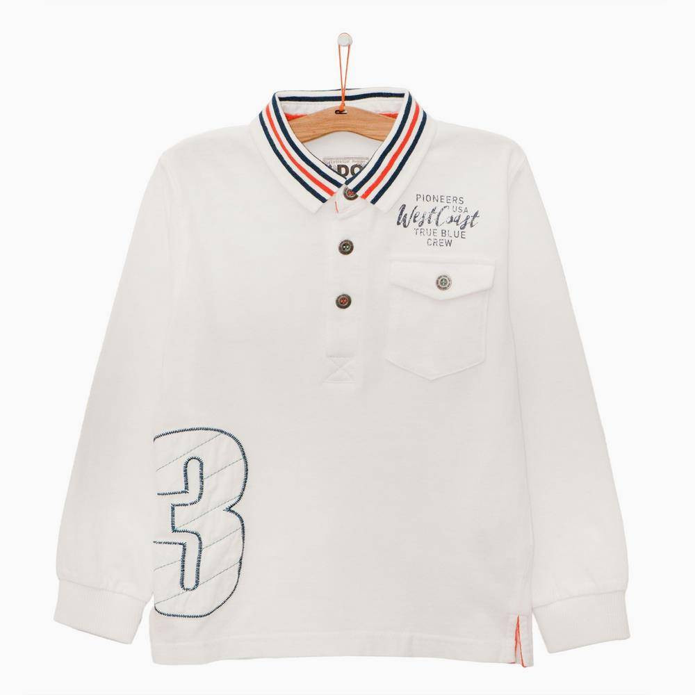 Гардероб Вашего ребенка не может обойтись без этого трикотажного свитера - поло IDO из 100% хлопка. Воротник в цветную яркую полочку, манжеты свитера выполнены из трикотажной эластичной двойной резинкой. Свитер декорирован накладным карманом на пуговице и аппликацией . Украшает свитер вышитый логотип IDO, небольшие разрезы по бокам.
