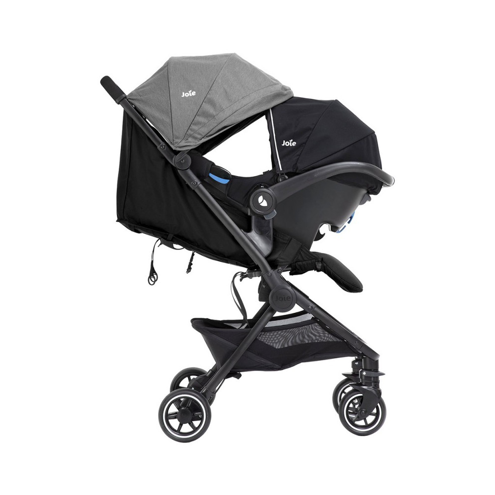 Фирменная сумка-чехол для транспортировки Joie Pact входит в комплект. В комплекте с коляской также идут адаптеры для установки на шасси автокресел группы 0+ фирмы Joie и совместимых моделей, имеющих разъёмы для крепления, аналогичные Maxi-Cosi.