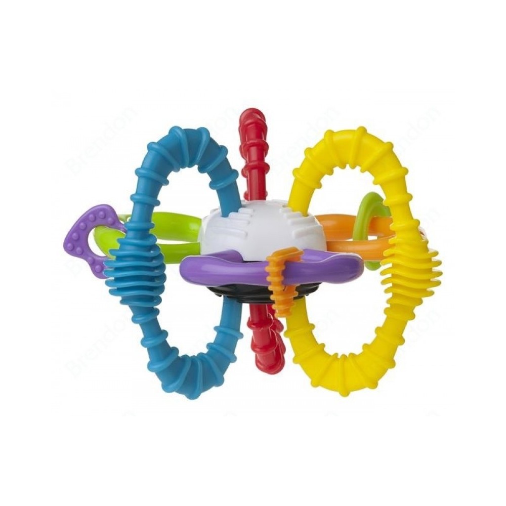 Гибкие элементы игрушки выгибаются в разные стороны и служат в качестве прорезывателей. Игрушка издает грохочущие звуки и развивает слуховое восприятие. Разная фактура игрушки способствует развитию тактильных чувств и мелкой моторики, а яркие цвета развивают зрительное восприятие.