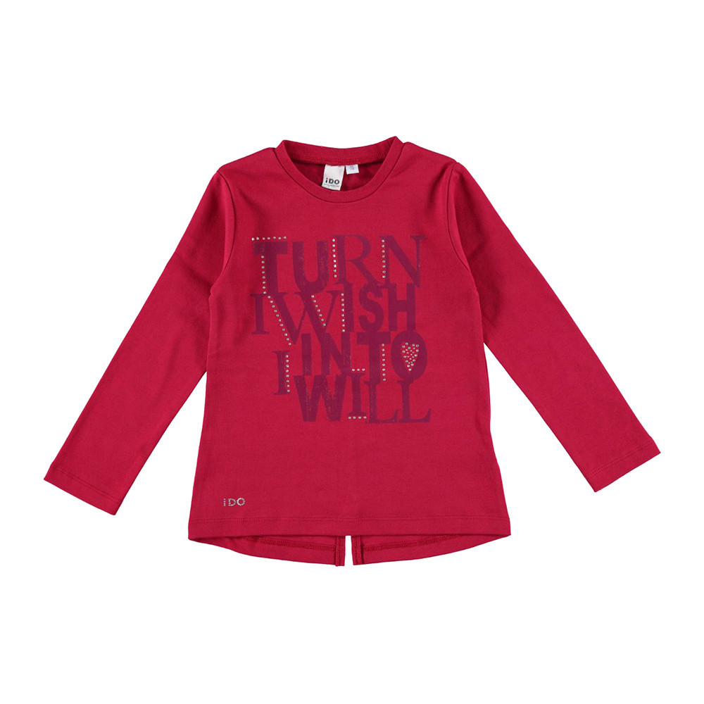 Оригинальный трикотажный реглан iDO из 100% хлопка спереди украшает цветной принт, на спинке снизу небольшой разрез. Ваша девочка никогда не захочет снимать этот чудесный реглан.