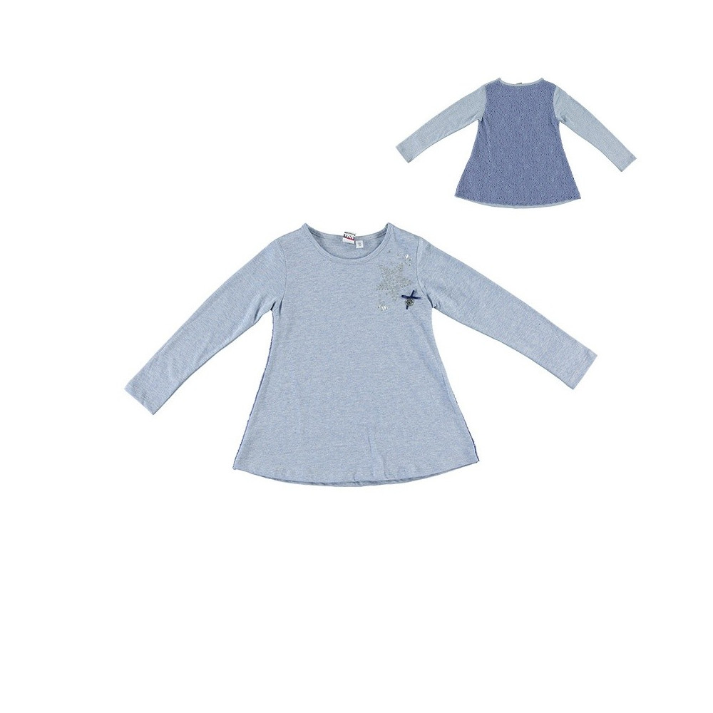 Замечательный трикотажный реглан для девочки изготовленный из 100% хлопка, к низу расклешон, в виде трапеции. Перед декорирован аппликацией и контрастным бантиком.