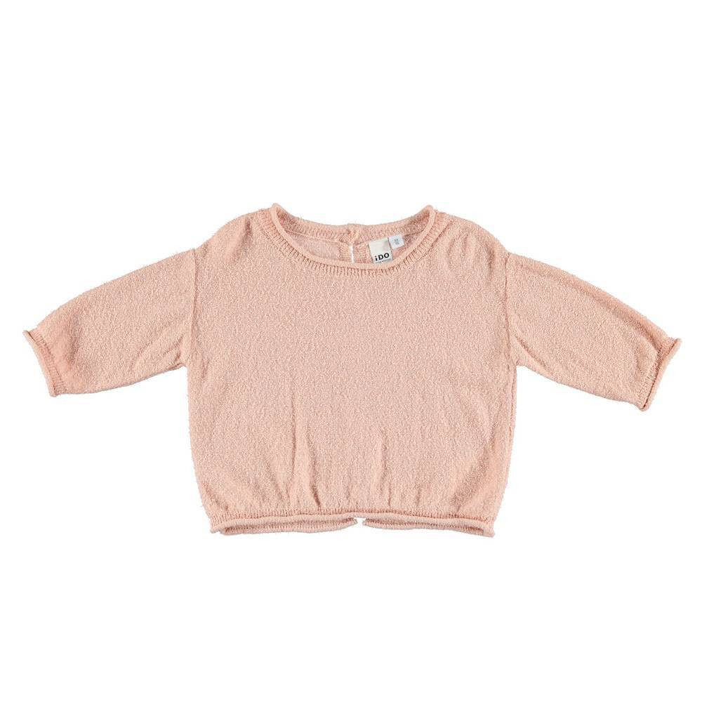 Трикотажный вязанный хлопковый свитер іDO прекрасное дополнение в гардеробе Вашей девочки. У свитера круглая горловина, спущенный рукав 3/4, застегивается на спинке пуговицами.