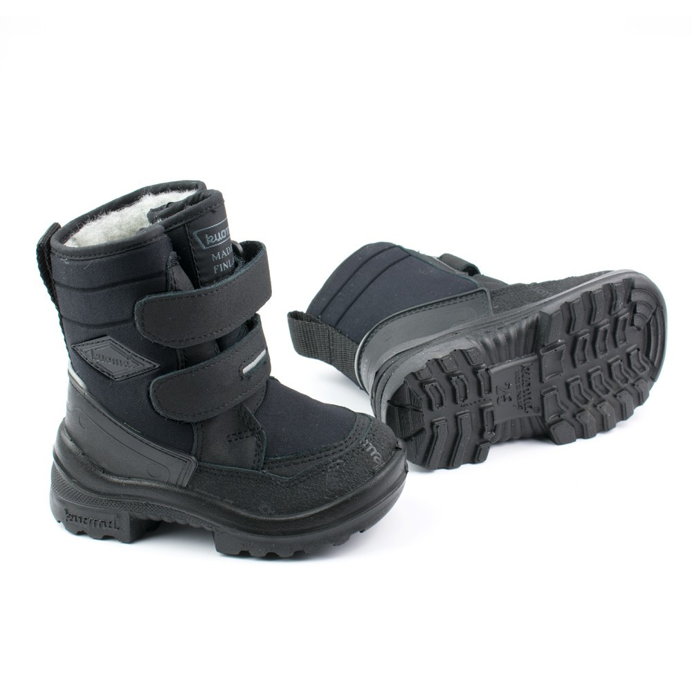 Зимняя обувь Kuoma исключительно теплая, легкая и удобная. Поверхность изготовлена из износостойкого материала, обладающего влагоотталкивающими и противогрязевыми свойствами. Все модели снабжены прочными кожаными вставками с влагостойкой пропиткой. Места наиболее подверженные истиранию, прошиты двойной строчкой, придающей швам высокую прочность. Светоотражающие полоски расположены спереди и сзади, что повышают безопасность. Все изделия имеют прочную, надежную, устойчивую, гибкую износостойкую, теплоизолирующую подошву из полиуретана. Подошва отливается непосредственно на верх обуви и поэтому держится лучше, чем приклеенная подошва". Несмотря на то, что подошва может скользить в сложных условиях, или когда обувь еще новая, «сцепление» улучшается по мере носки. Теплая сменная стелька, которая благодаря шероховатости нижнего слоя не свертывается под ногой во время носки. Анатомическая широкая колодка изготовлена специально для детских ножек. Четко выполненная бирка с указанием размера обуви, на которой можно написать имя (детские модели). Под слоем поверхностной ткани находится слой теплоизолирующей пластмассы, которая благодаря своей конструкции с закрытыми порами совершенно не впитывает влагу (обувь быстро сохнет).Модели с застежками препятствуют попаданию снега внутрь.