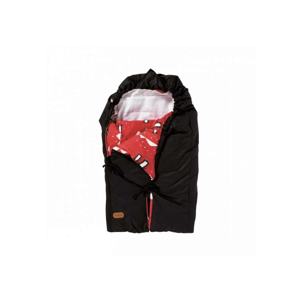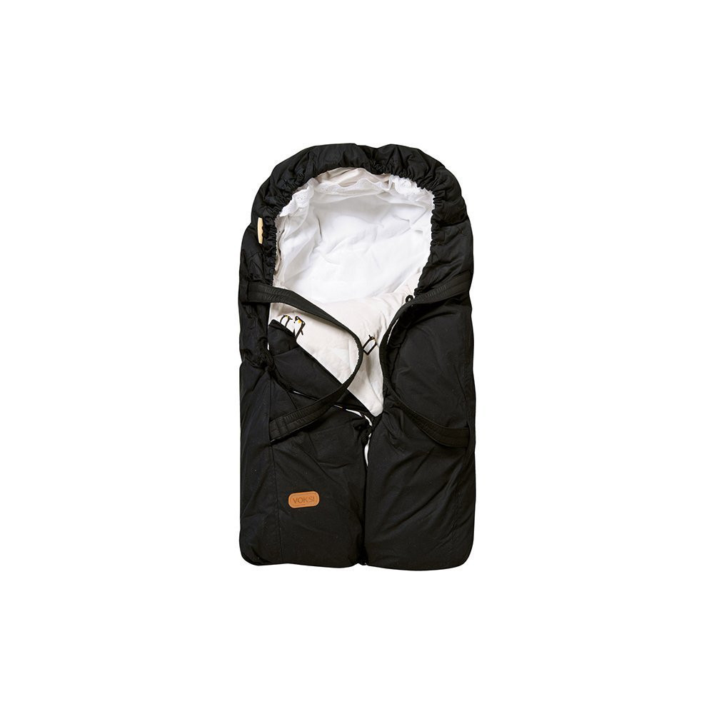 Пользоваться конвертом Voksi как спальным мешком можно до тех пор, пока кроха спит на свежем воздухе в своей коляске. Конверт закрывает тело ребенка со всех сторон, фиксирующие шнурки-застежки не дают ему стянуть конверт с себя, что часто происходит с одеялом.