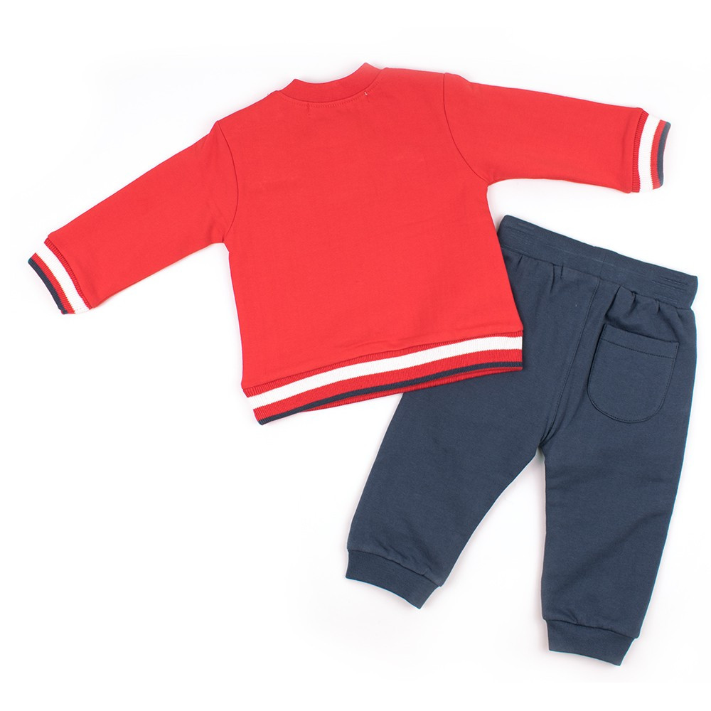 Удобный, стильный комплект Babybol станет незаменимым вариантом для Вашего мальчугана для ежедневных прогулок в любую погоду. Комплект изготовлен из 100% хлопка с начесом внутри. Мягкие трикотажные штаны с боковыми вставками на манжете с прорезными карманами спереди, на эластичном поясе с вшитой резинкой, резинка с тесьмой, которая затягивается, позволяет регулировать объем талии. Модель штанов практична. Горловина у свитера, манжеты рукавов, пояс на талии на цветной полосатой трикотажной эластичной резинке. Украшением служит детский рисунок и аппликация. Застегивается свитер на плече кнопками, только для размеров 12м, 18м, 24м, что облегчат и ускорят процесс одевания ребенка.