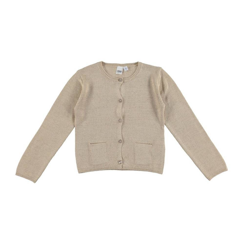Трикотажная вязаная хлопковая кофта-кардиган іDO прекрасное дополнение в гардеробе Вашей девочки. У кардигана круглая горловина, застегивается на пуговицы, есть два накладных кармана.