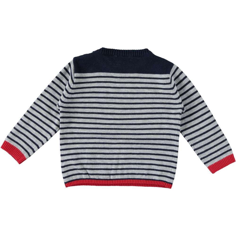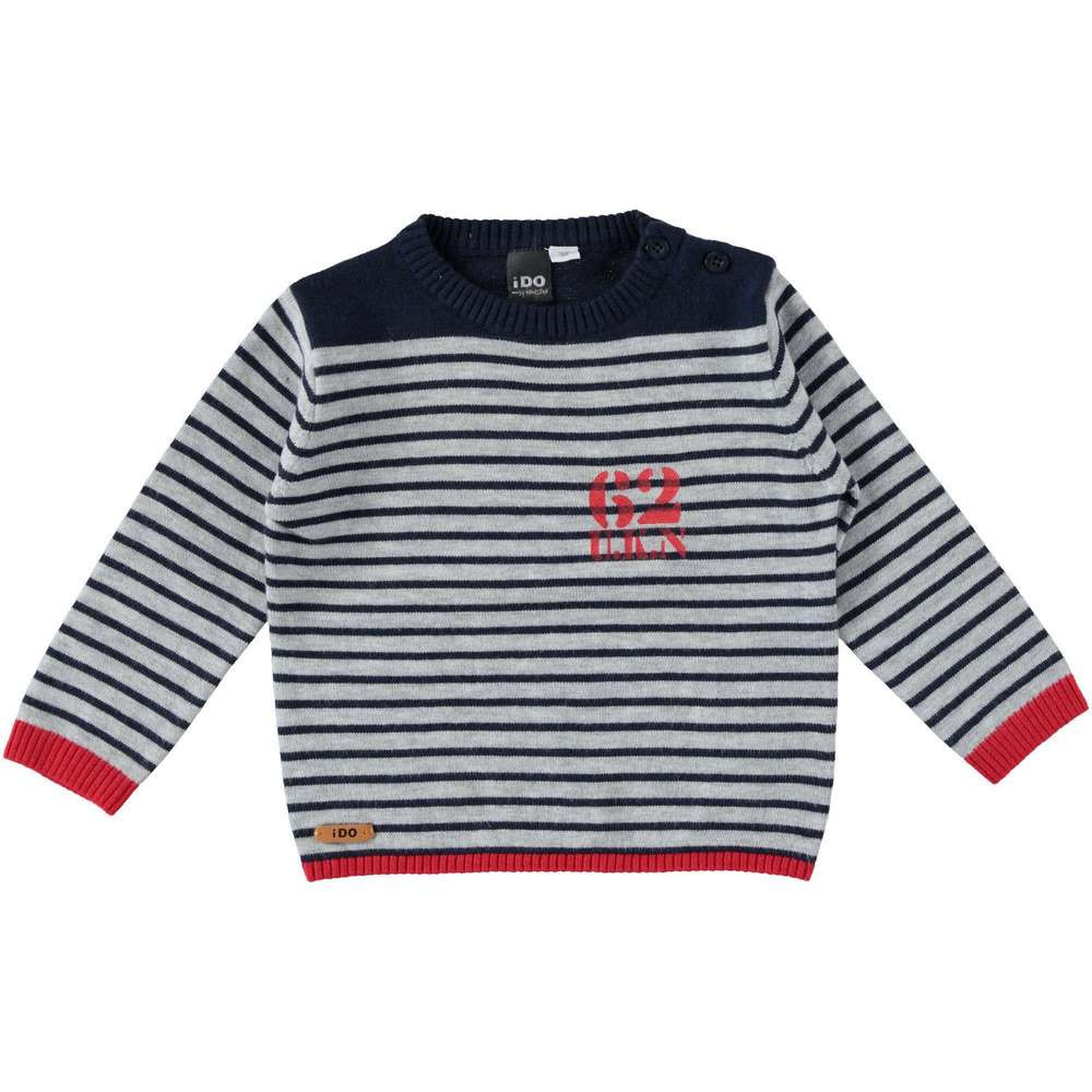 Этот трикотажный полосатый вязанный свитер iDO выполнен из смеси хлопка и нейлона. Спереди свитер украшен аппликацией. На горловине, манжетах рукавов, поясе на талии двойная контрастная резинка. На плече есть кнопки, для существенно облегчит процесс одевания Вашего ребенка.
