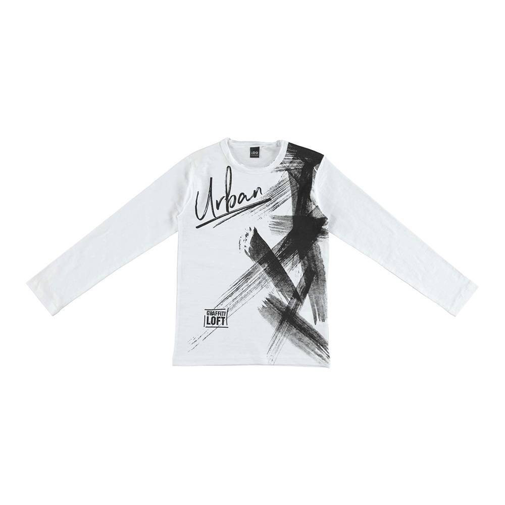 Тонкий трикотажный реглан для мальчика стильный и модный. У реглана круглая горловина с необработанными режущими кромками и украшена городской граффити спереди.