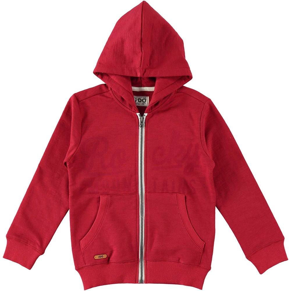 iDO предлагает Вашему ребенку стильный трикотажная толстовка с капюшоном. Застегивается спереди на контрастную молнию, кармана кенгуру украшает свитер. маленькая эмблема іDO пришита снизу. Манжеты на рукавах и пояс на талии двойная эластичная трикотажная резинка.
