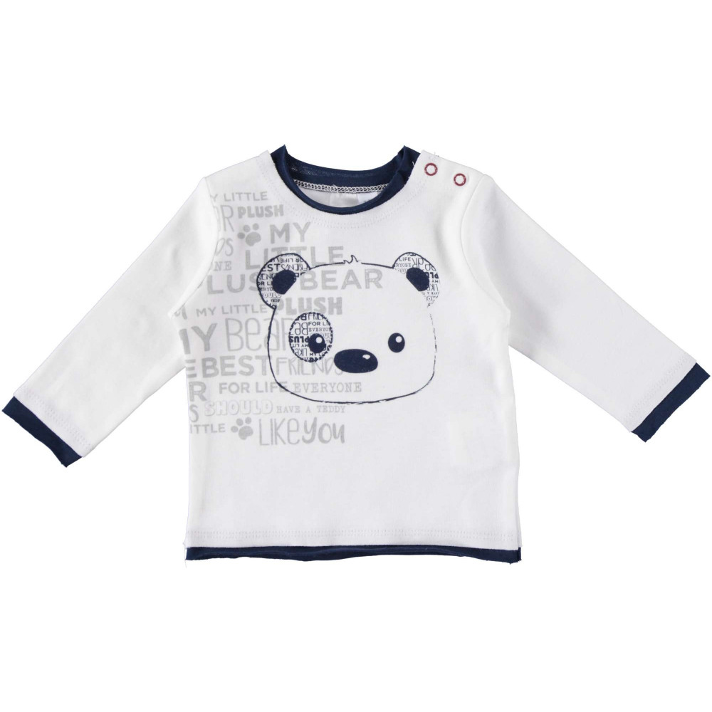 Этот трикотажный реглан iDO выполнен из 100% хлопка. Спереди реглан украшен графическим рисунком и мордашкой мишки.На горловине, манжетах рукавов, и на поясе талии контрастная вставка. На плече есть пуговицы, что существенно облегчит процесс одевания Вашего ребенка.
