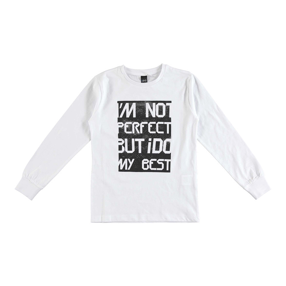Трикотажный свитер изготовлен из 100% хлопка, идеально подходит для повседневного носки. Горловина свитера и манжеты выполнены трикотажной эластичной резинки. Забавное текст, напечатан спереди на свитере.