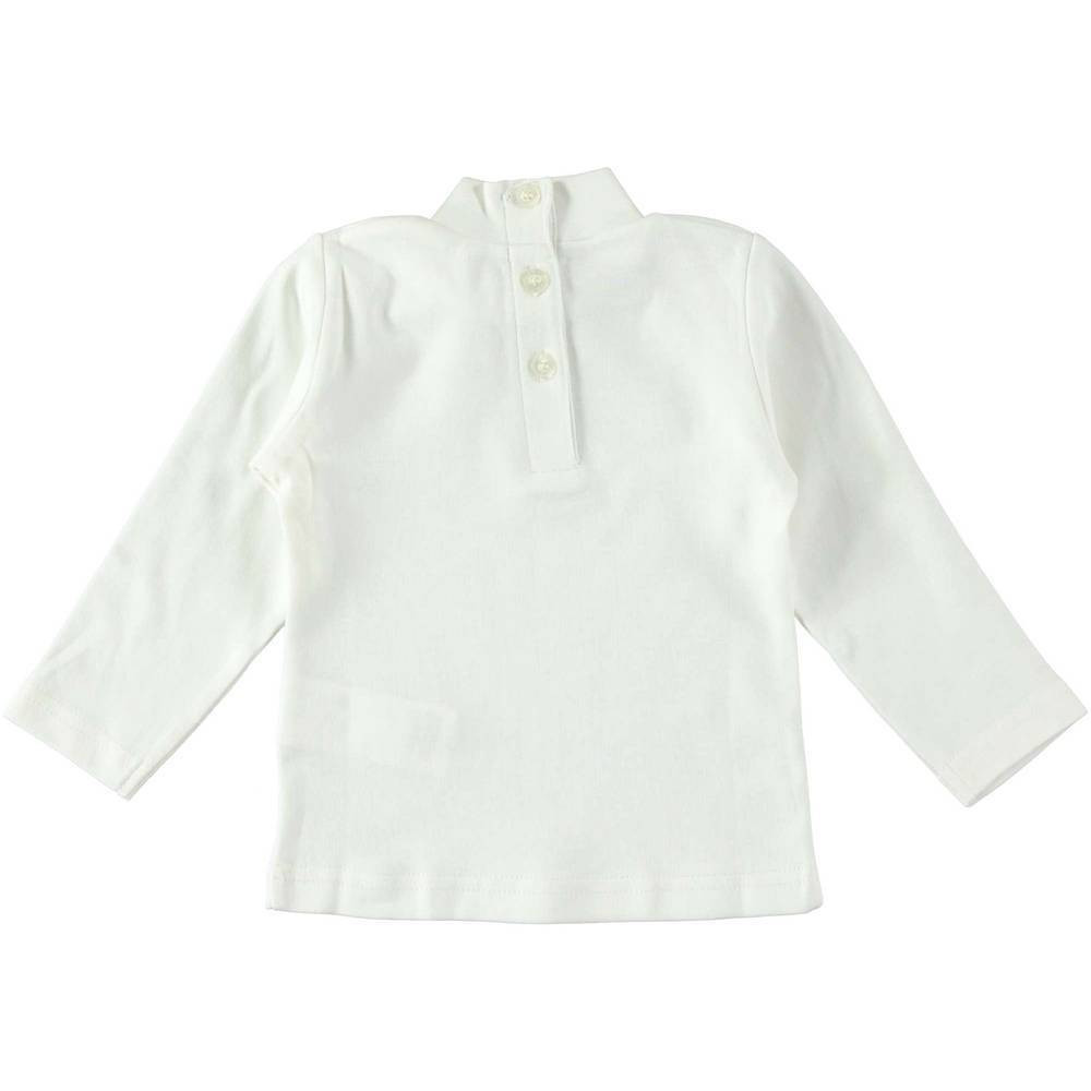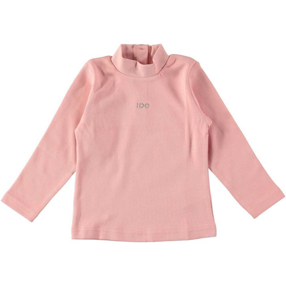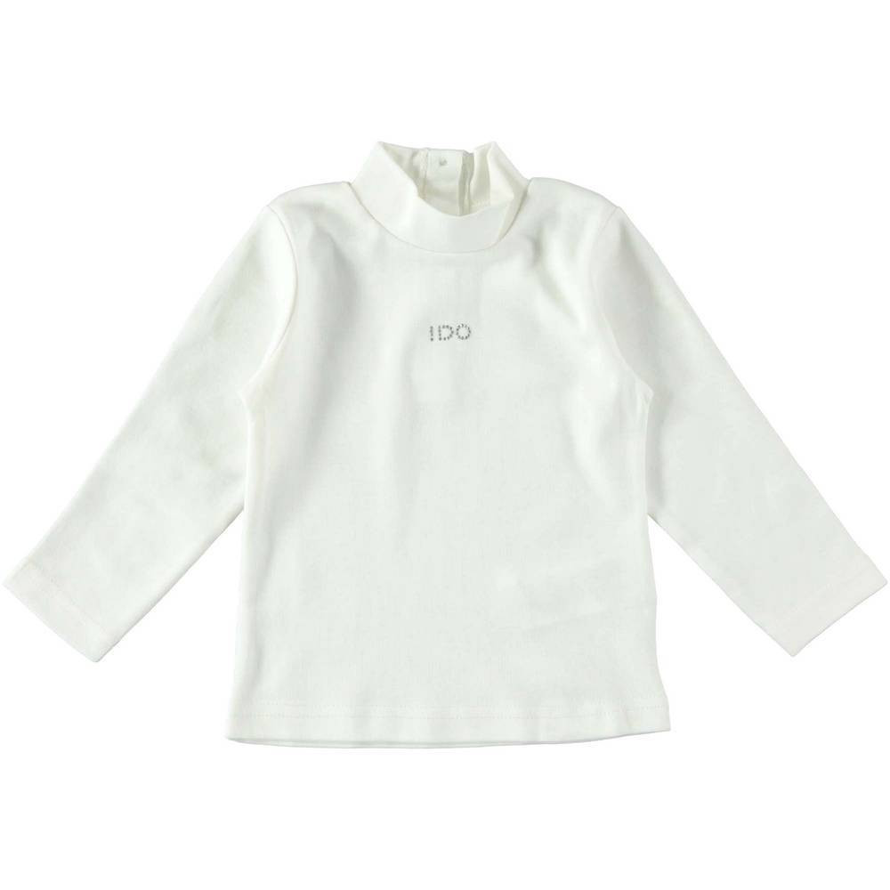 Трикотажный хлопковый свитер дополнит гардероб Вашей девочки. Свитер с воротником стойкой изготовлен из 100% хлопка. Застегивается на спинке пуговицами. Украшением служит эмблема IDO из стразов.