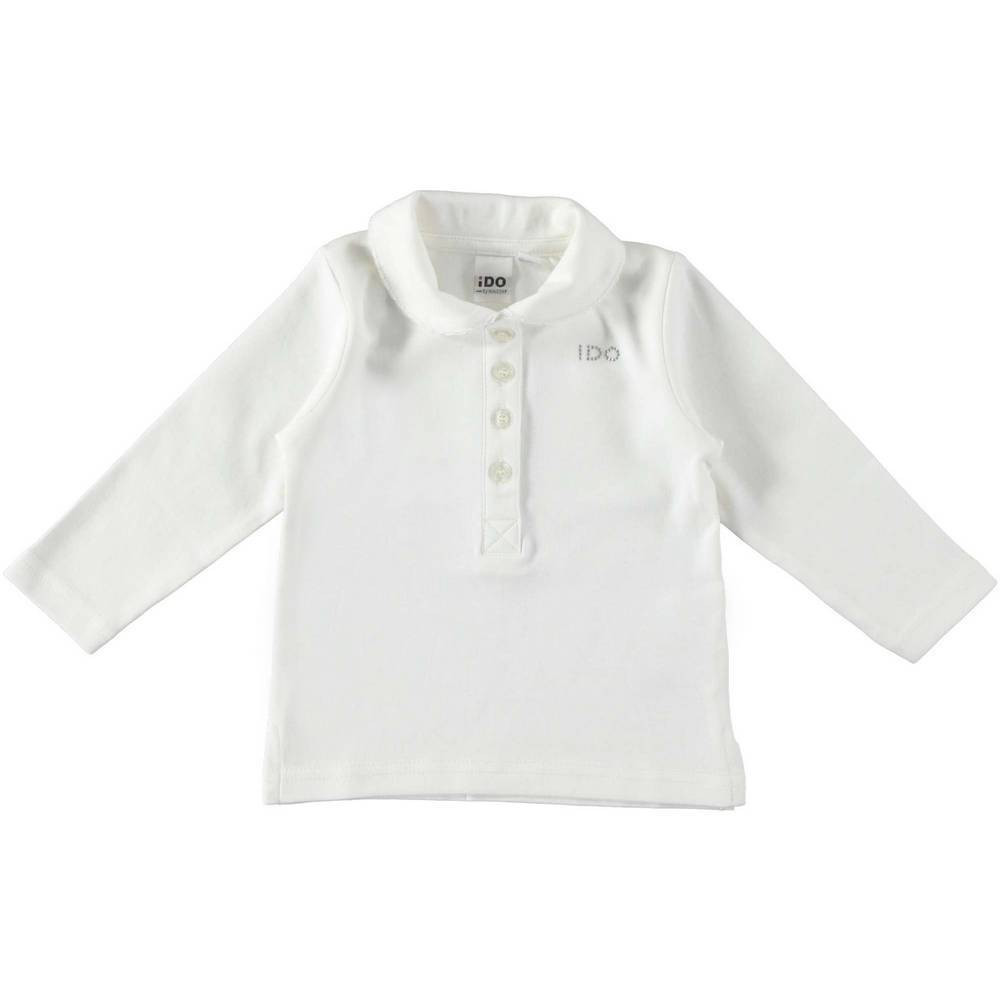 Этот трикотажный свитер iDO для девочек выполнен из 100% хлопка. Свитер с маленьким, чуть округленным воротничком, застегивается спереди на пуговицы. На левой полочке эмблема IDO из горного хрусталя.