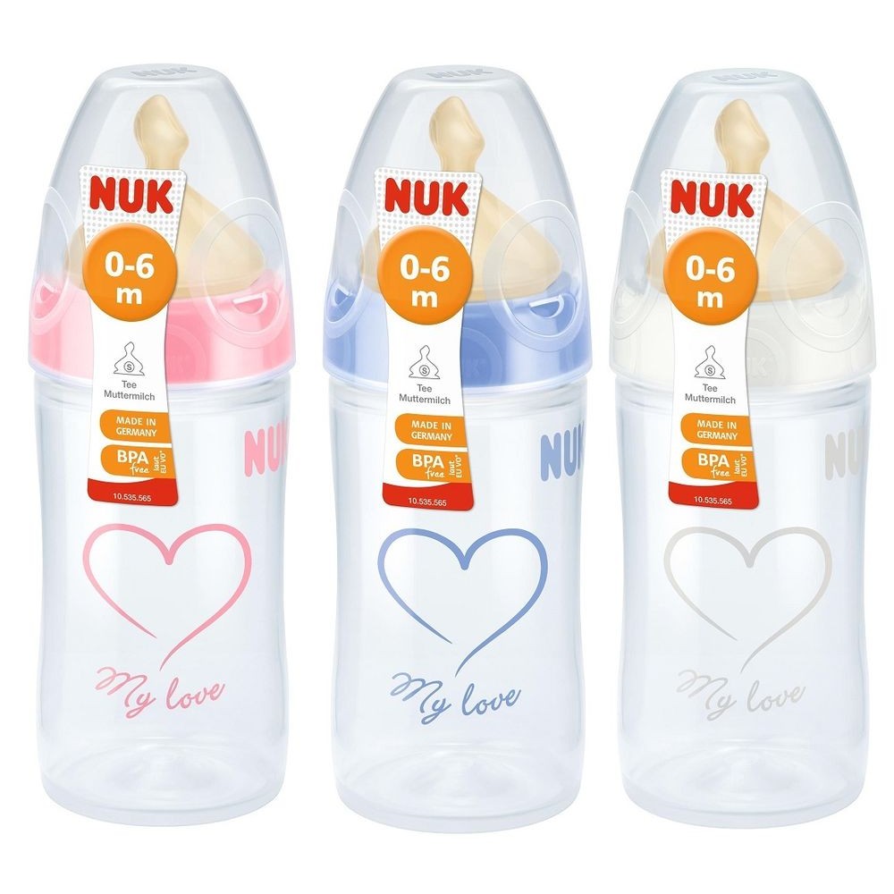 Бутылочка New Class First Choice изготовлена из полипропилена, не содержит бисфенол А, прозрачная, устойчива к высоким температурам. Поэтому бутылочку можно поддавать стерилизации путем кипячения. У нее широкое горлышко, что позволяет качественно очистить бутылочку от смеси перед стерилизацией. Бутылочки NUK из полипропилена могут выдерживать температуру до 100 градусов, их можно подвергать заморозке. В комплект к бутылочке прилагается соска из латекса 1 размера М, отверстие в соске немного больше, чем классический первый размер, подходит для детей от 0 до 6 месяцев.