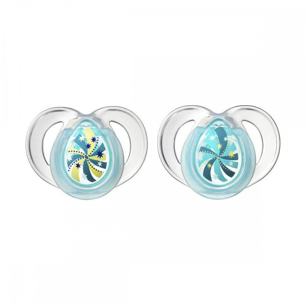 Пустышки Tommee Tippee Ночные, 2 шт. выполнены с нагубником, имеющим светящееся в темноте кольцо, благодаря чему маме будет легко обнаружить соску. Представленная серия подходит для малышей от полугода до полутора лет, что обусловлено формой силиконовой части и размером пустышки. Ортодонтическую соску симметричной конфигурации малышу удобнее принять, что доказано исследованиями, проведенными производителем.