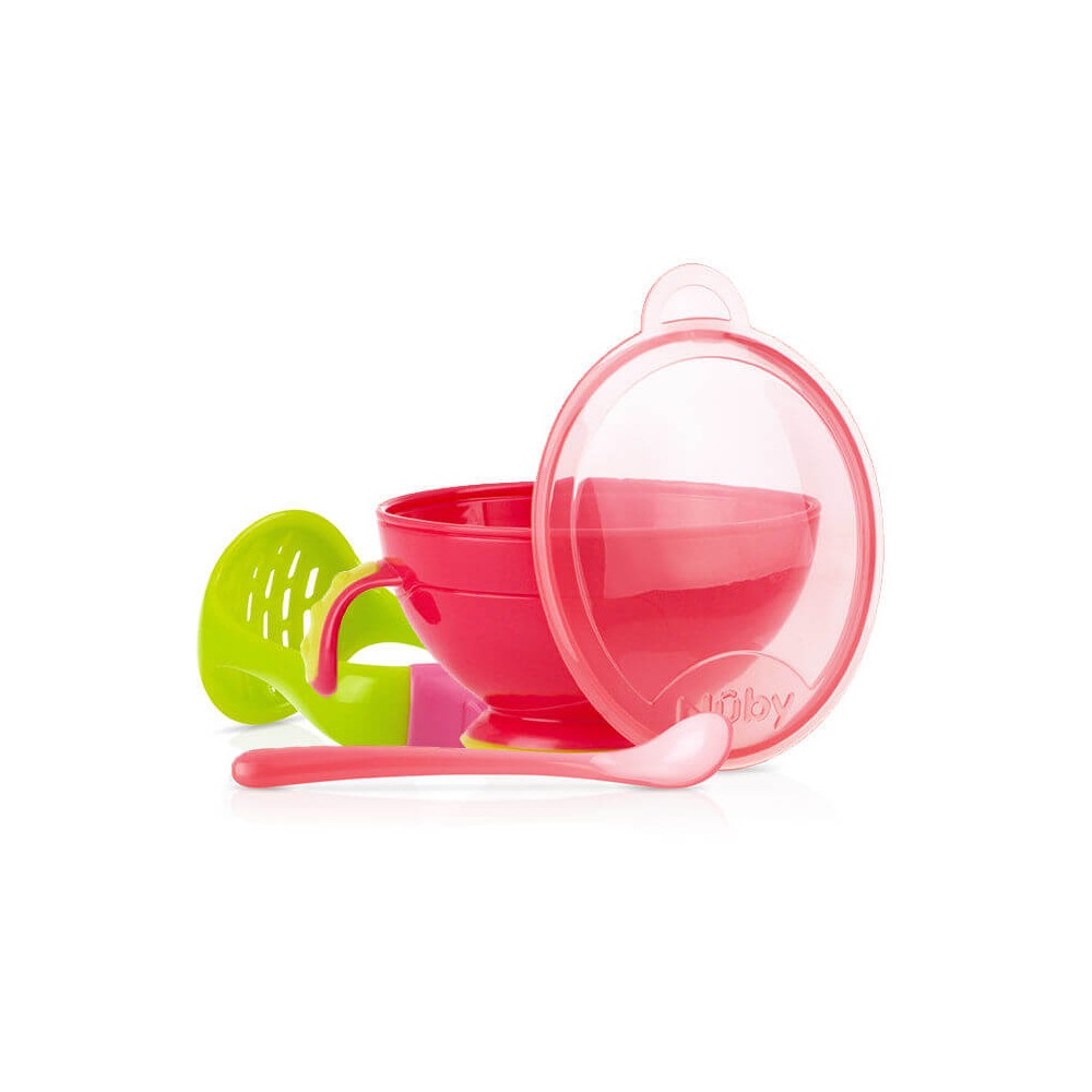Все четыре элемента набора не содержат Бисфенол-А и Фталат, делая Nuby Garden Fresh Mash'n Feed безопасным для повседневного использования. Ложка повсюду закруглена, что исключает любые потенциально острые края. Специально разработан для создания свежего детского питания быстро и легко в домашних условиях. Измельчайте, храните и кормите – и все это с помощью одного набора.
