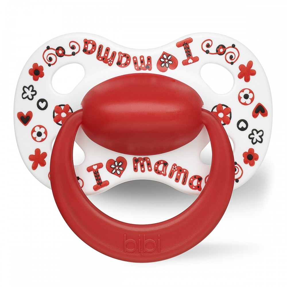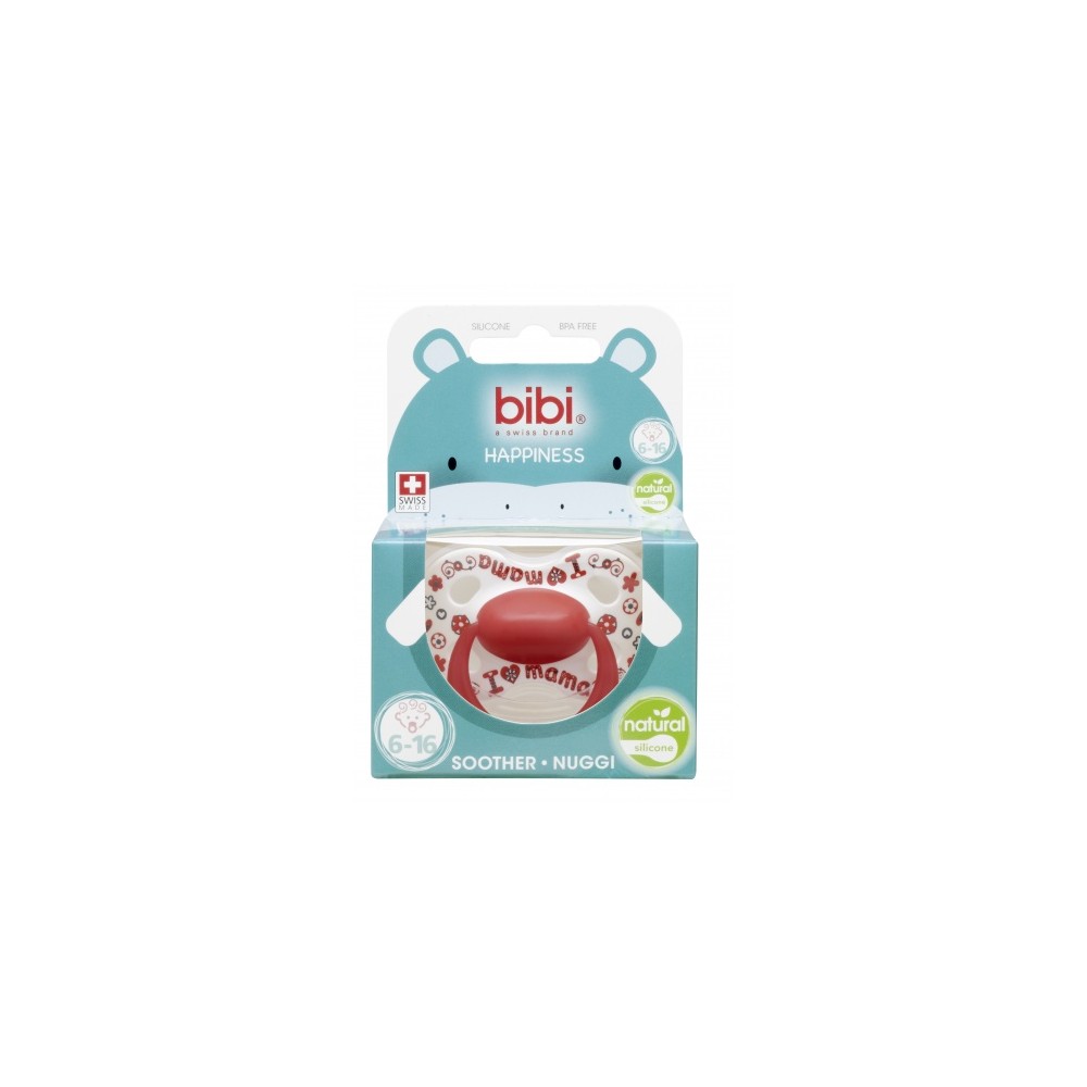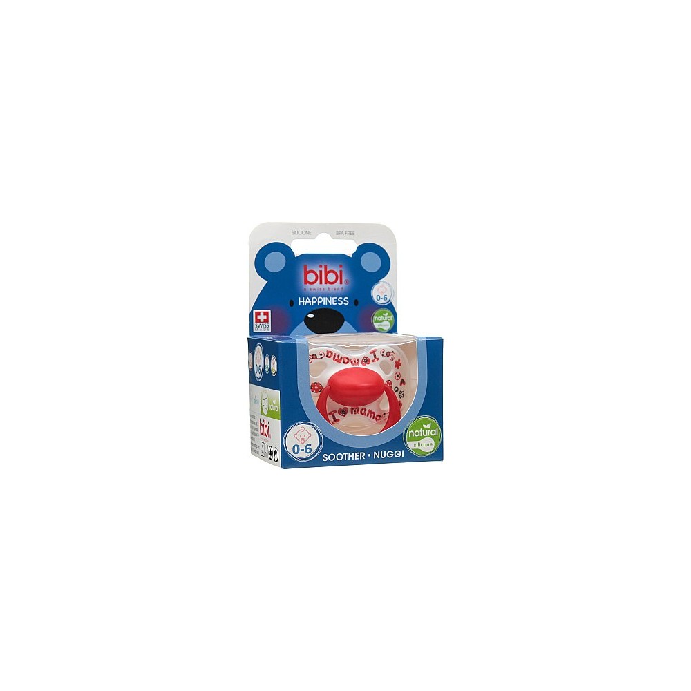 Пустышка Bibi Happiness Natural — это швейцарское качество и безопасность Вашего ребенка. Пустышка подходит как для мальчика, так и для девочки, ведь какой у них замечательный дизайн! Надпись на пустышке "Я люблю маму" несомненно вызвет улыбку у взрослых, а яркий рисунок сделает пустышку любимой вещью Вашего малыша.