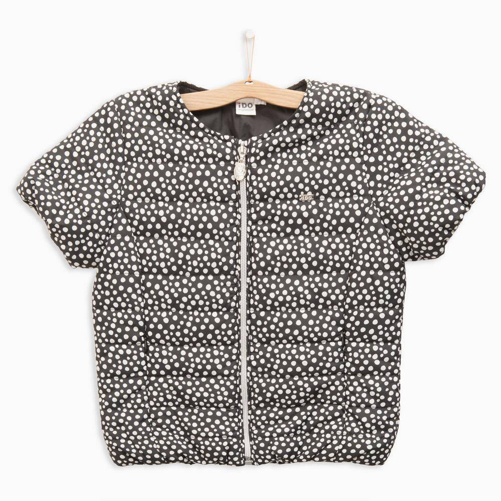 Стильная и яркая жилетка обязательно понравится Вашей маленькой моднице. Трендовый черный цвет и чудесный принт в белый горох делают эту модель очень привлекательной. В такой жилетке Вашей девчушки будет очень удобно гулять и конечно, она всегда будет в центре внимания. Сочетайте такую жилетку с однотонными штанами и джинсами и стильными кофточками, создавая неповторимые образы для Вашей девочки каждый день.
