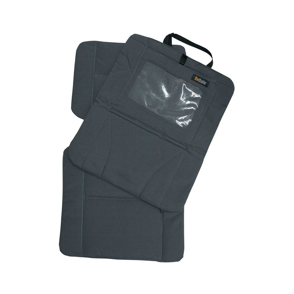 Двокомпонентний захисний килимок для автомобіля з окремим кишенею для планшета, який росте разом з дитиною, оскільки він може використовуватися для автомобільних сидінь будь-якого віку.