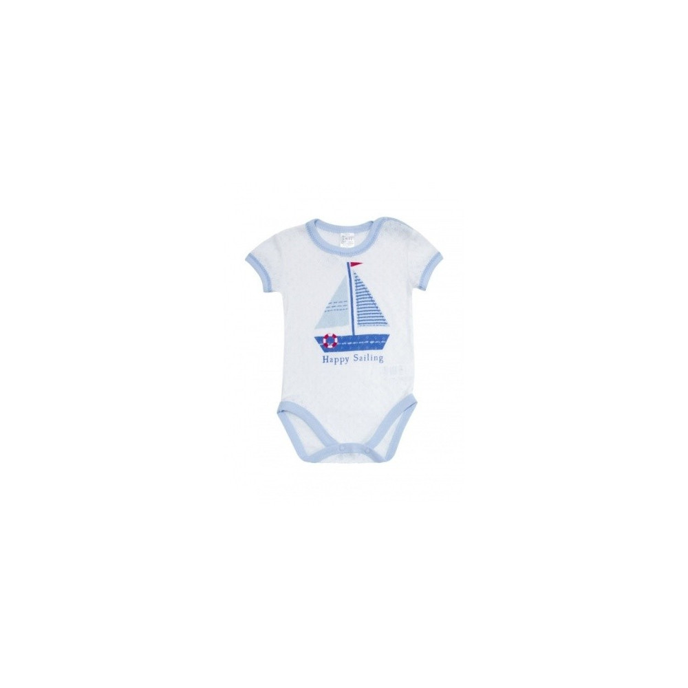Трикотажний боді для хлопчика - це зручний легкий одяг, в якому малюкові буде комфортно навіть у найспекотніший літній день. Зшитий з натуральної тканини 100% бавовни (ажурна гумка), яка не викликає подразнення, не парить шкіру малюка. Застібається на плечі та знизу на зручні кнопочки, що значно спрощує одягання та зміну підгузника. У центрі декорований милим принтом на морську тематику.