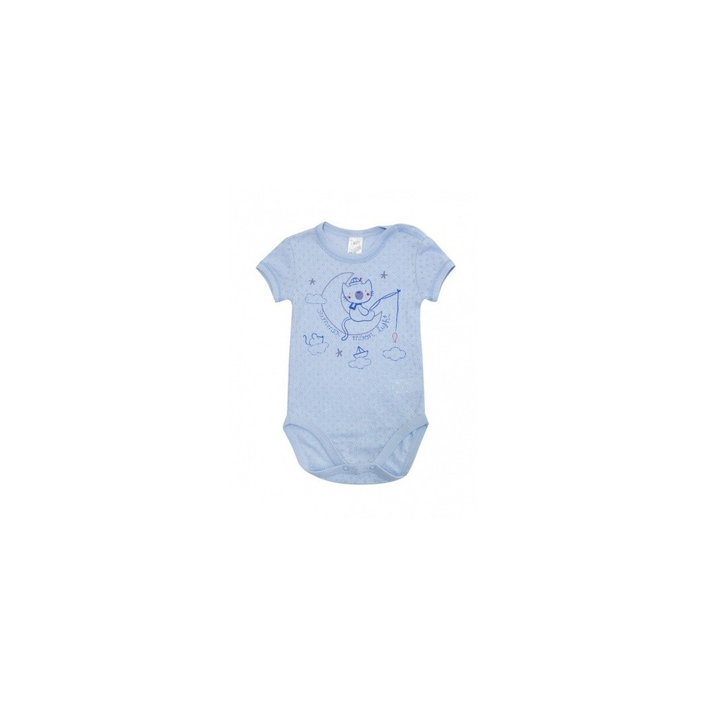 Трикотажний боді для хлопчика - це зручний легкий одяг, в якому малюкові буде комфортно навіть у найспекотніший літній день. Зшитий з натуральної тканини 100% бавовни (ажурна гумка), яка не викликає подразнення, не парить шкіру малюка. Застібається на плечі та знизу на зручні кнопочки, що значно спрощує одягання та зміну підгузника. У центрі декорований милим принтом на морську тематику.