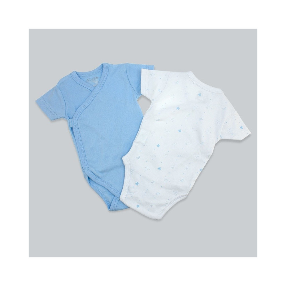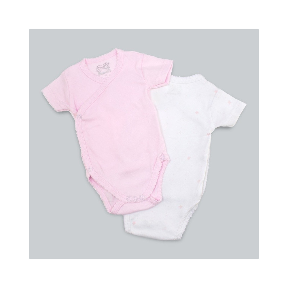 Трикотажний комплект із 100% бавовни складається з двох кольорових однотонних боді з коротким рукавом. Застібається боді збоку на кнопки,а також є кнопки між ніжками для зручності зміни підгузки.