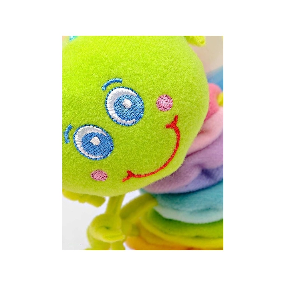 У Гусенички весела усміхнена мордочка, в голові і хвості - брязкальця, а сама гусінь складена з різної тканини, щоб стимулювати тактильне сприйняття малят.