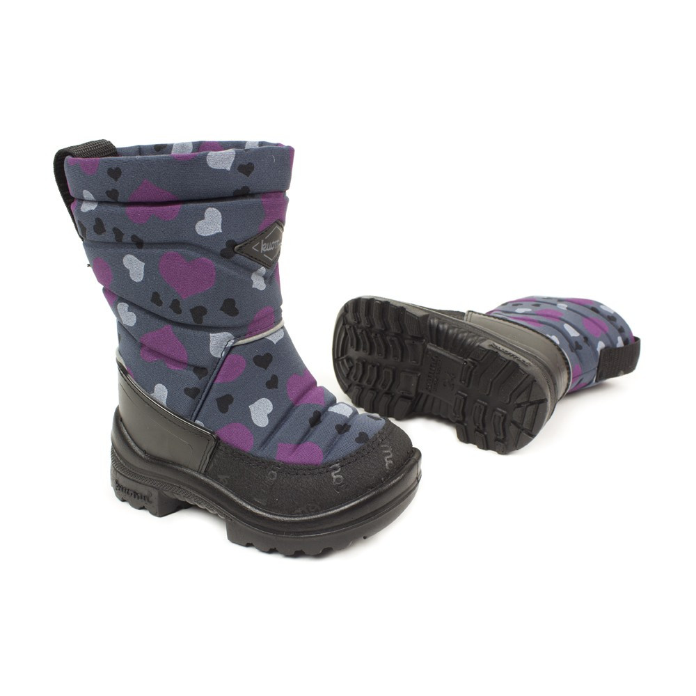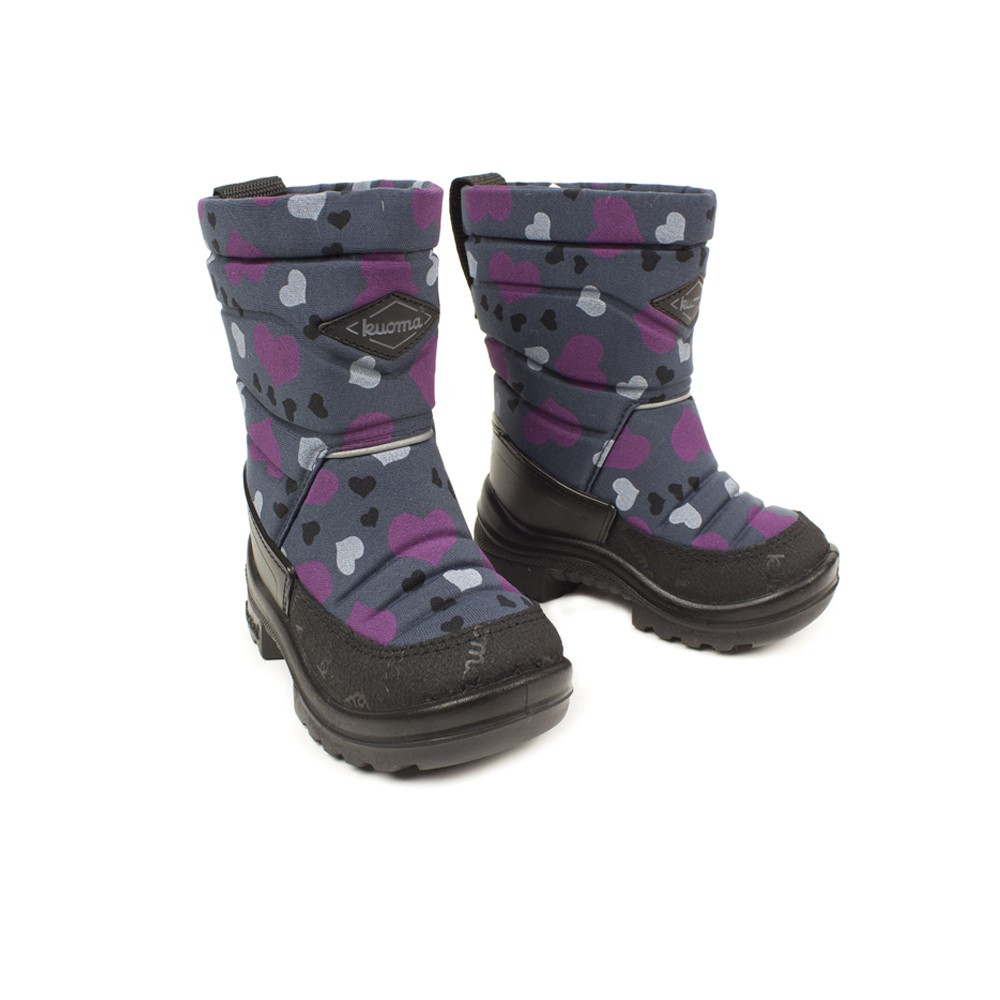 Зимове взуття Kuoma виключно тепле, легке та зручне. Поверхня виготовлена із зносостійкого матеріалу, що володіє вологовідштовхувальними та протигрязевими властивостями. Всі моделі мають міцні шкіряні вставки з вологостійким просоченням. Місця найбільш схильні до стирання, прошиті подвійним рядком, що надає швам високу міцність. Світловідбивні смужки розташовані спереду та ззаду, що підвищують безпеку. Всі вироби мають міцну, надійну, стійку, гнучку зносостійку, теплоізолюючу підошву з поліуретану. Підошва відливається безпосередньо на верх взуття і тому тримається краще, ніж приклеєна підошва. шару не згортається під ногою під час шкарпетки Анатомічна широка колодка виготовлена спеціально для дитячих ніжок. закритими порами зовсім не вбирає вологу (взуття швидко сохне). Моделі із застібками перешкоджають попаданню снігу всередину.