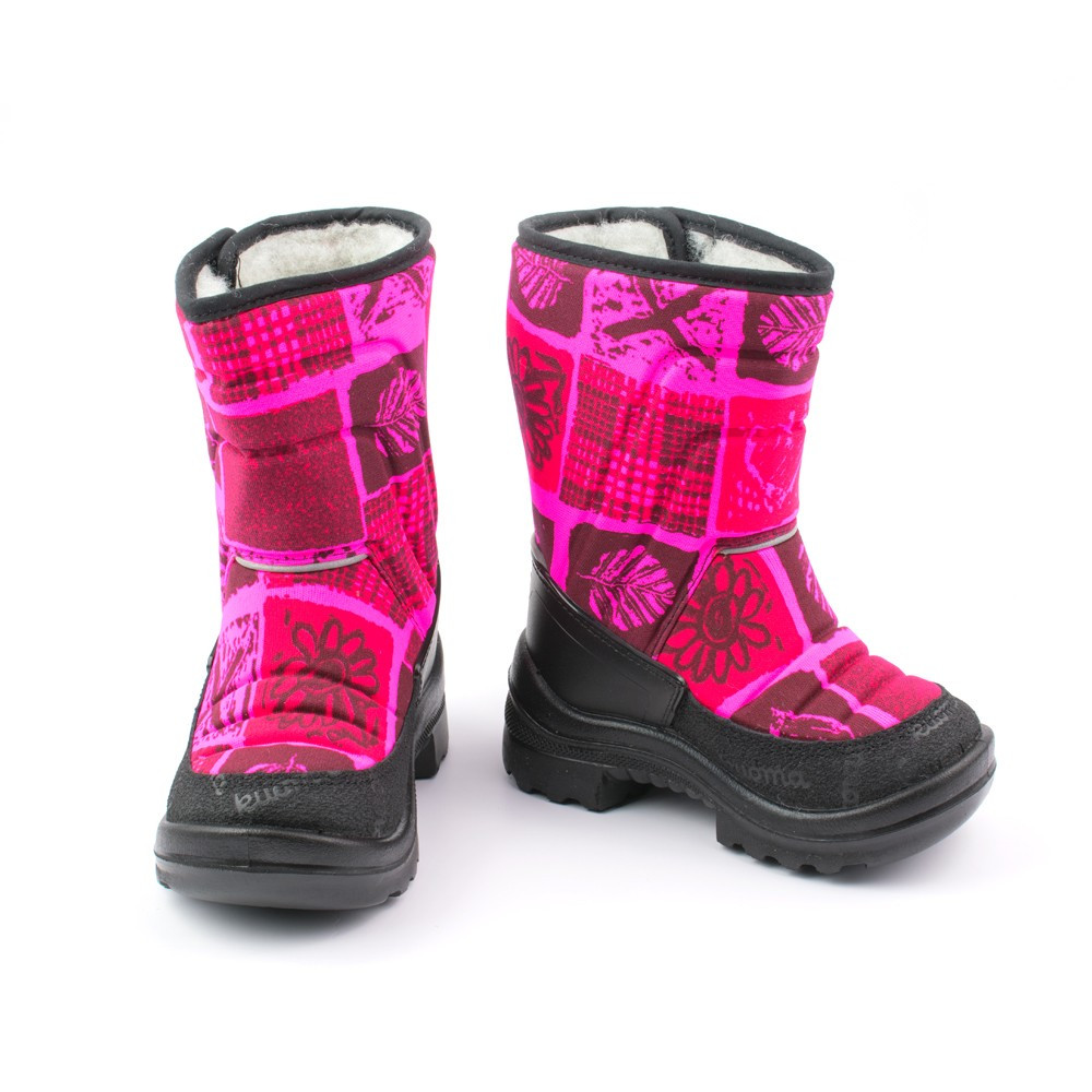 Зимове взуття Kuoma виключно тепле, легке та зручне. Поверхня виготовлена із зносостійкого матеріалу, що володіє вологовідштовхувальними та протигрязевими властивостями. Всі моделі мають міцні шкіряні вставки з вологостійким просоченням. Місця найбільш схильні до стирання, прошиті подвійним рядком, що надає швам високу міцність. Світловідбивні смужки розташовані спереду та ззаду, що підвищують безпеку. Всі вироби мають міцну, надійну, стійку, гнучку зносостійку, теплоізолюючу підошву з поліуретану. Підошва відливається безпосередньо на верх взуття і тому тримається краще, ніж приклеєна підошва. шару не згортається під ногою під час шкарпетки Анатомічна широка колодка виготовлена спеціально для дитячих ніжок. закритими порами зовсім не вбирає вологу (взуття швидко сохне). Моделі із застібками перешкоджають попаданню снігу всередину.