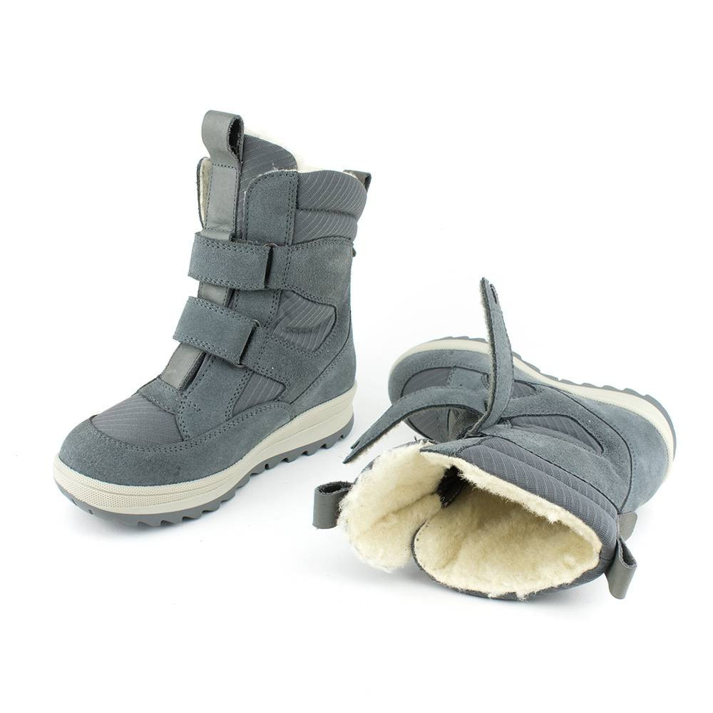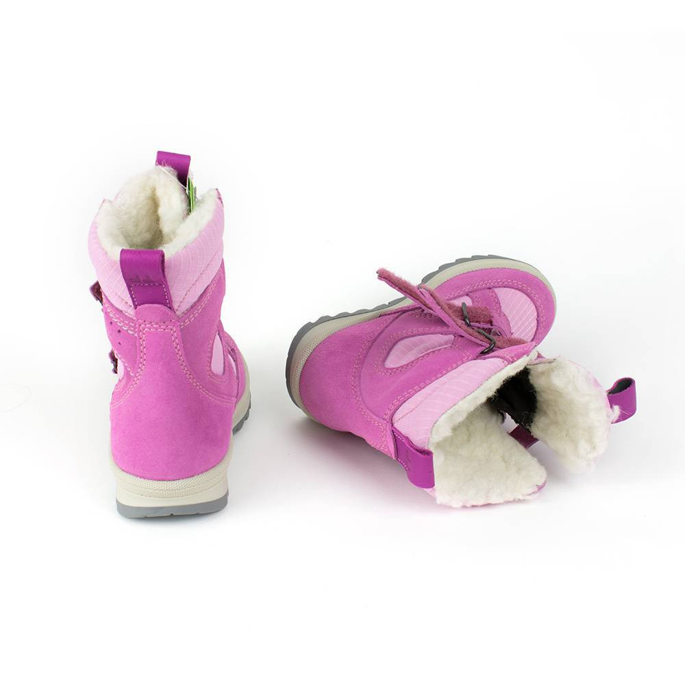 Комфортні, стильні зимові чоботи зручно сидять на ніжці і фіксують стопу в анатомічно правильному положенні, устілки вовняні з супінатором. Товста поліуретанова підошва доповнена протекторним візерунком, завдяки якому чоботи не ковзають по асфальту, землі, плитці. Гнучкий матеріал створює необхідну амортизацію при ходьбі, що не переутомлює ноги дитини. Утеплені черевики вовняною підкладкою, яка зігріє ноги дитини і забезпечить комфорт протягом усього дня. Для зручності чоботи застібаються на липучки, що дозволяє регулювати щільність прилягання чобітків до ніжки і сприяє максимальному комфортним відчуттів під час ходьби.