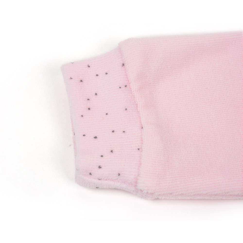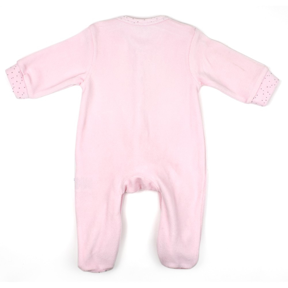 Велюровий однотонний ніжно-рожевий чоловічок Babybol для новонародженої дівчинки чудово підходить і для виписки, і для сну вдома. Манжети на рукавах, горловина моделі, стопи – кольорові. Спереду прикрашений дуже милим малюнком, застібається на кнопки спереду по всій довжині, що значно полегшує одягання малюка. Кнопки між ніжками для зручності зміни підгузки.