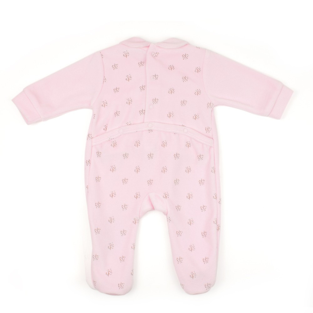 Велюровий кольоровий ніжно-рожевий чоловічок Babybol для новонародженої дівчинки чудово підходить і для виписки, і для сну вдома. Манжети на рукавах, комір людини однотонні. Прикрашає модель маленький тоненький рюш та стрази. Чоловічок застібається кнопками на спинці.