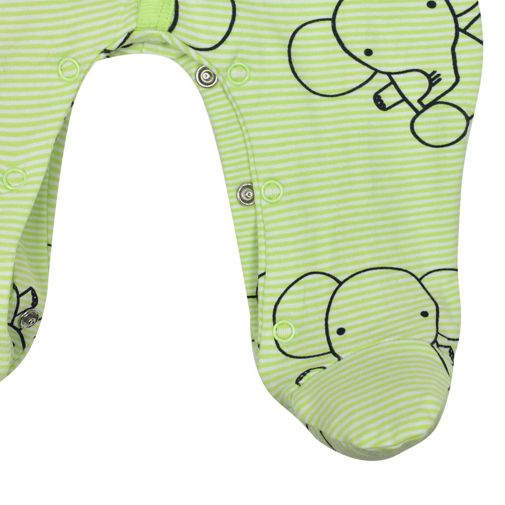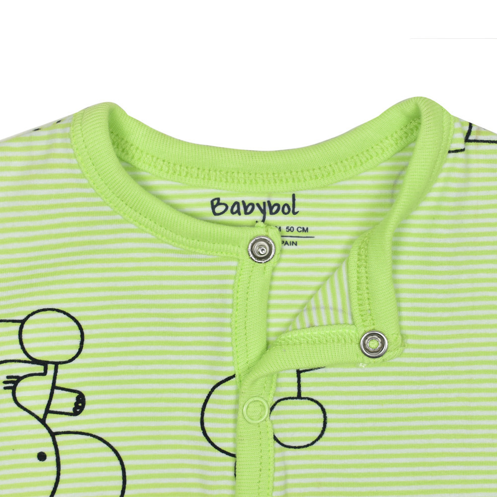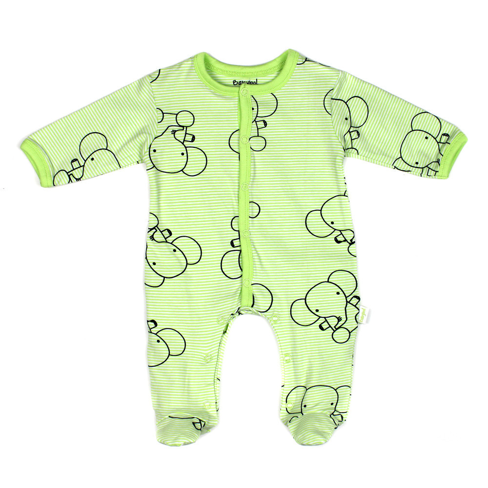 Чудова пропозиція для новонароджених діток - трикотажний смугастий комбінезон-чоловічок Babybol з малюнком слоників по всьому полю. Застібка розташована спереду - кнопки по всій довжині, є так само кнопки і між ніжками, що суттєво полегшує та прискорює процес одягання та зміни підгузка.