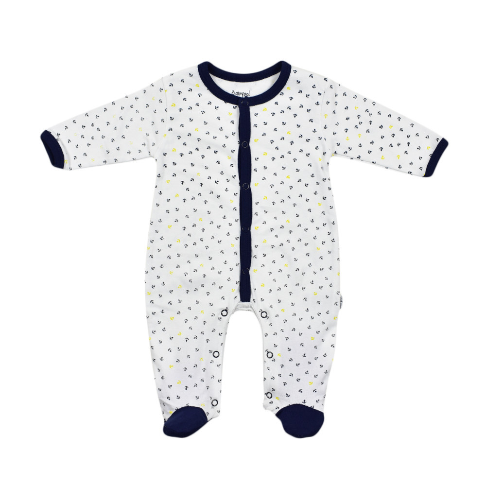 Чудова пропозиція новонародженому хлопчику від Babybol трикотажний комбінезон-чоловічок-ромпер із застібкою спереду по центру на кнопки по всій довжині, і між ніжок, що істотно полегшує і прискорює процес одягання і зміни підгузка. Для запобігання розтягування горловина, краї оброблені контрастною трикотажною гумкою.