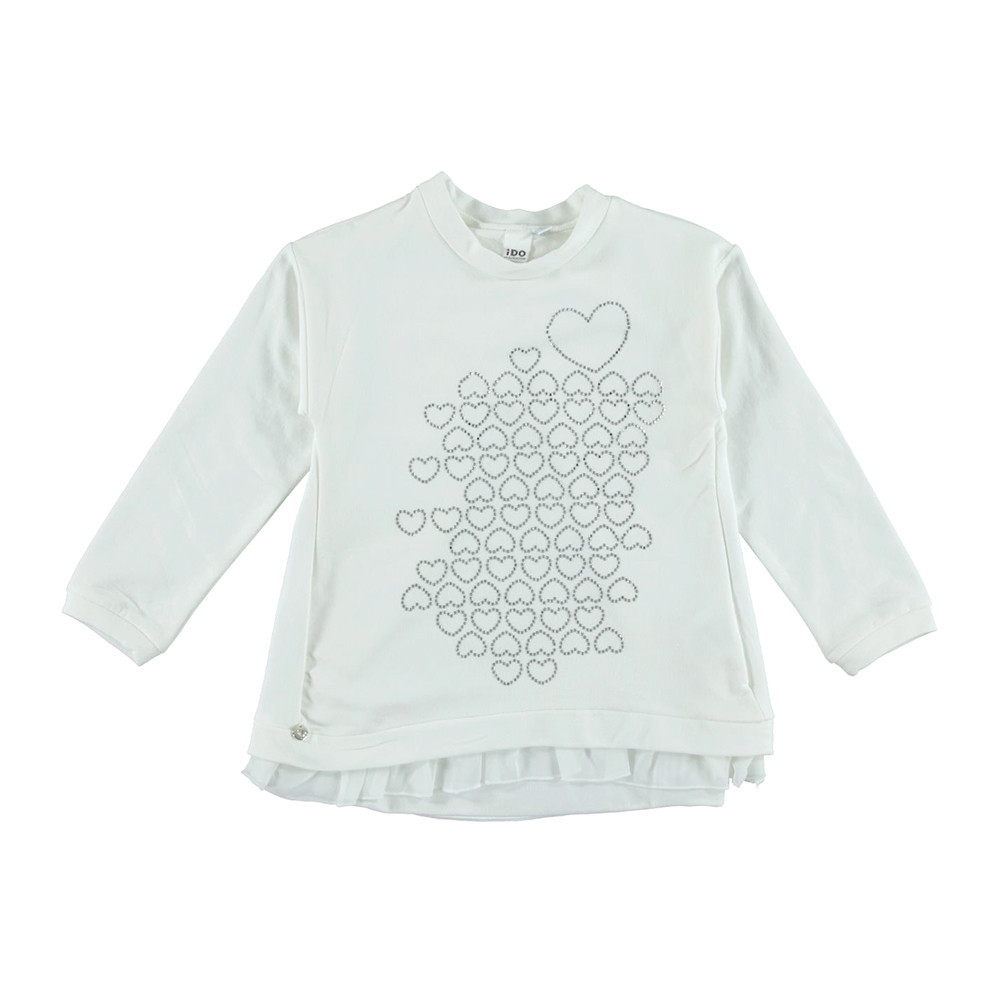 Оригінальний трикотажний реглан iDO зі 100% бавовни, прикрашає спереду оборка та серця зі стразів Ваша дівчинка ніколи не захоче знімати цей чудовий реглан.