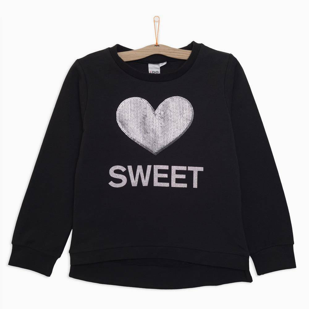 Цей красивий і стильний реглан створений, щоб наголосити на неповторному характері Вашої дівчинки. У такому реглані чорного кольору з аплікацією з паєток спереду у вигляді серця, на спинці у вигляді зірки Ваша дівчинка завжди буде в центрі уваги. Цей реглан відмінно поєднуватиметься з найрізноманітнішими речами з гардеробу дівчинки. В основі реглану - натуральна бавовняна тканина (100% бавовна), а це означає, що дівчинці в ній буде дуже комфортно.