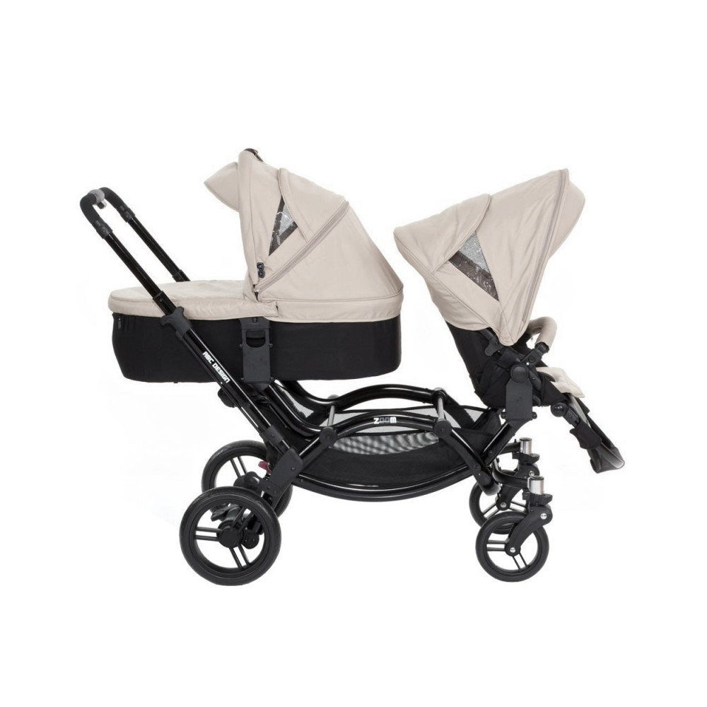 Елементи коляски можуть бути встановлені в двох напрямках. Діти можуть сидіти як обличчям один до одного, так і один за іншим. Можливість комбінації блоків дозволяє використовувати коляску для дітей різного віку одночасно.